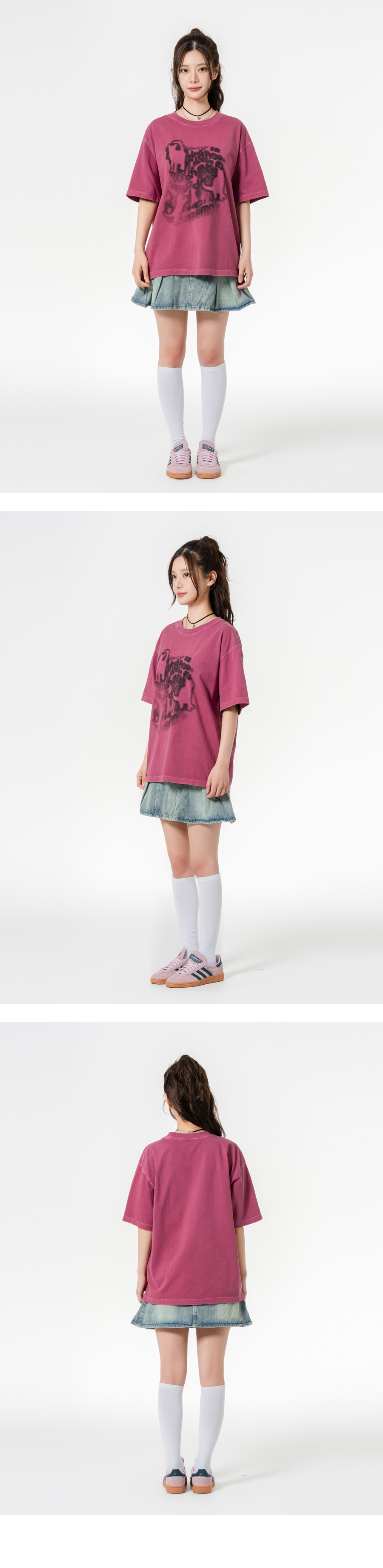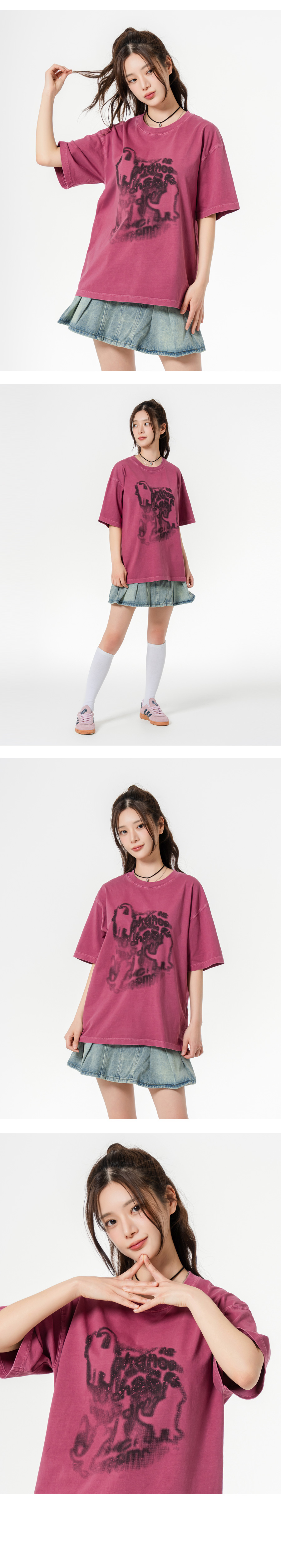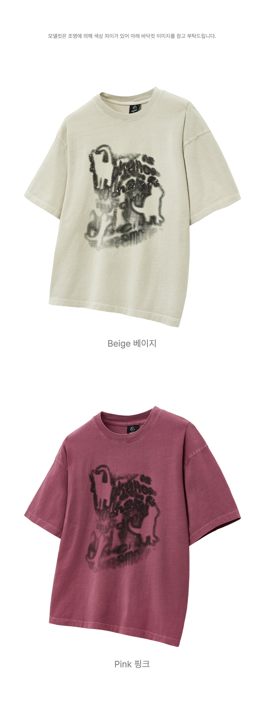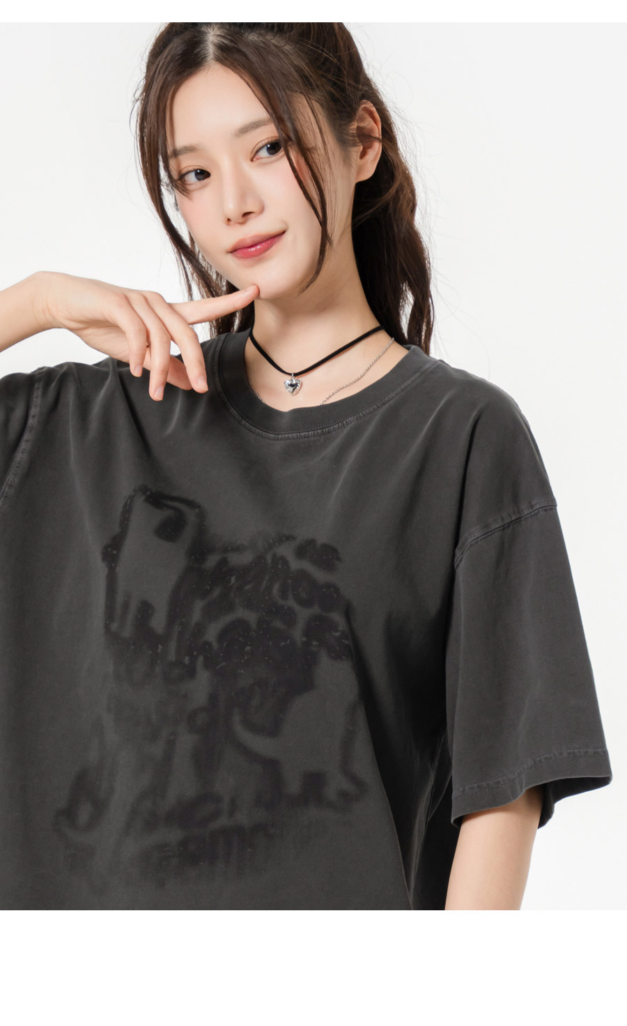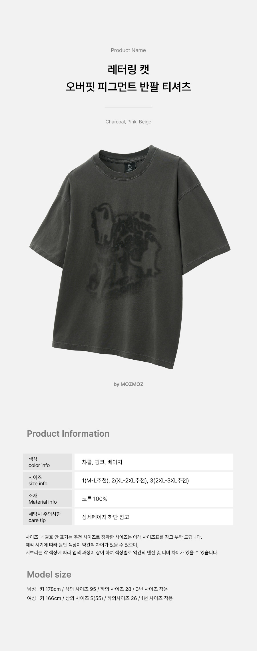 레터링캣 오버핏 피그먼트 반팔 티셔츠 챠콜