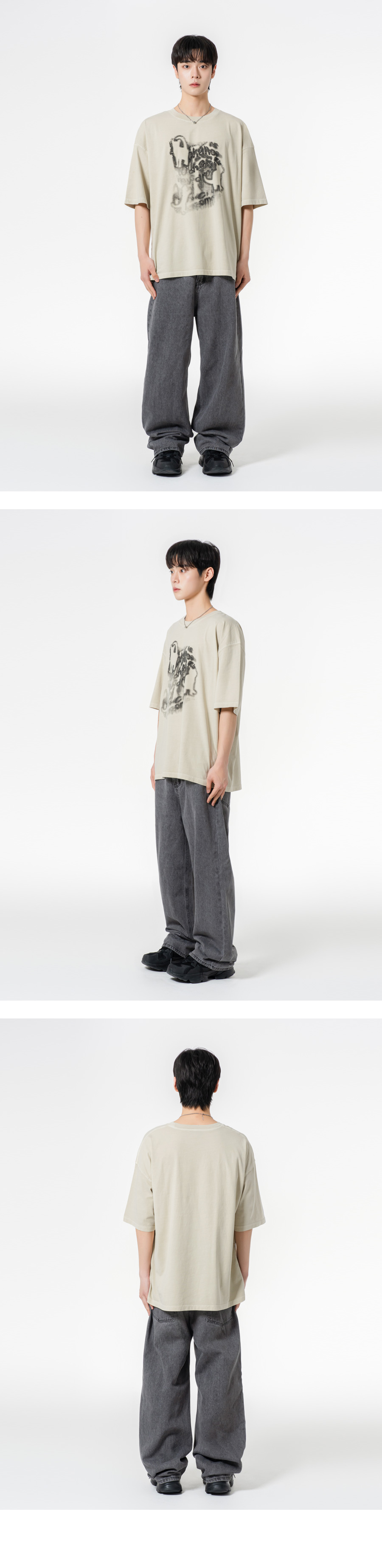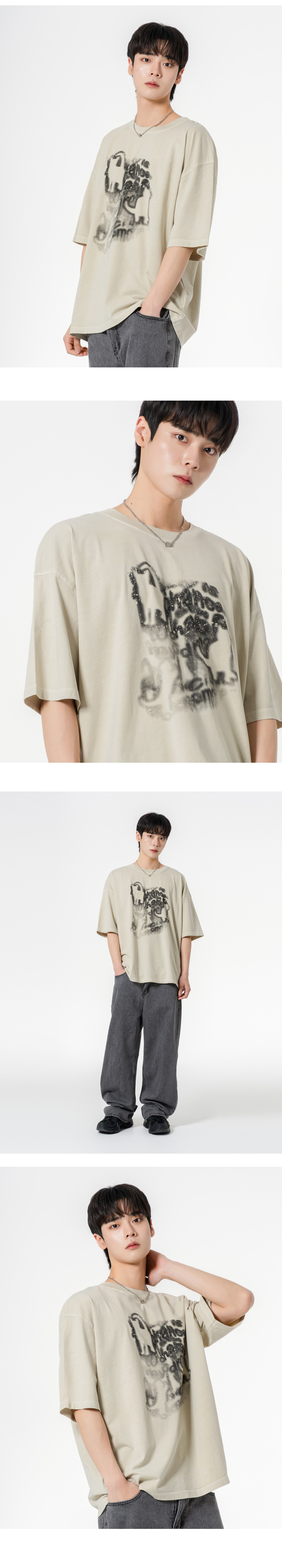 오프 나염 피그먼트 오버핏 반팔티셔츠 챠콜