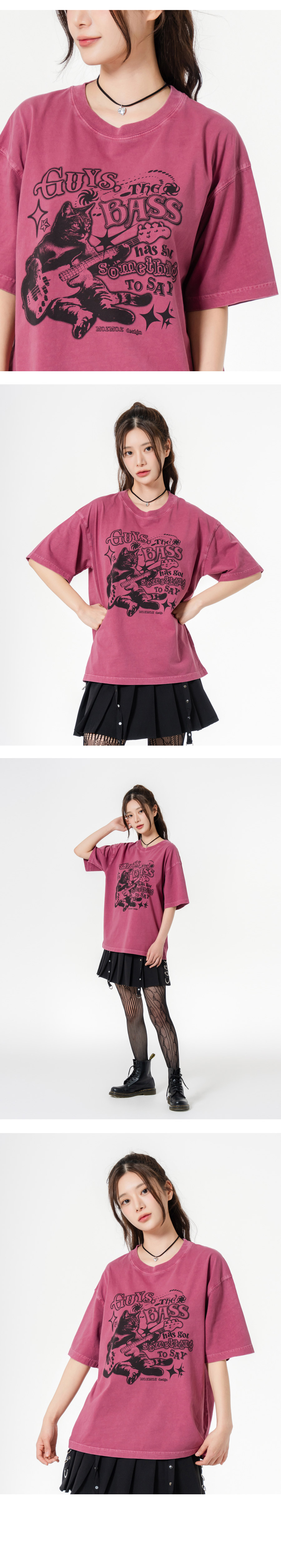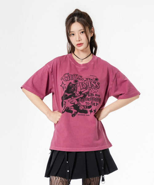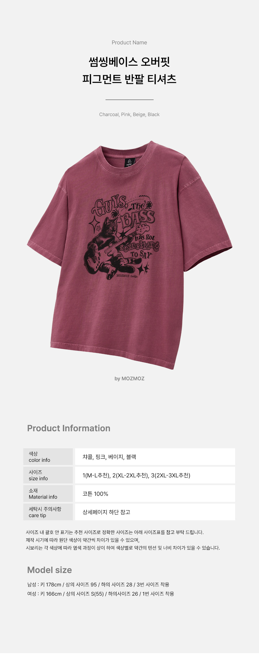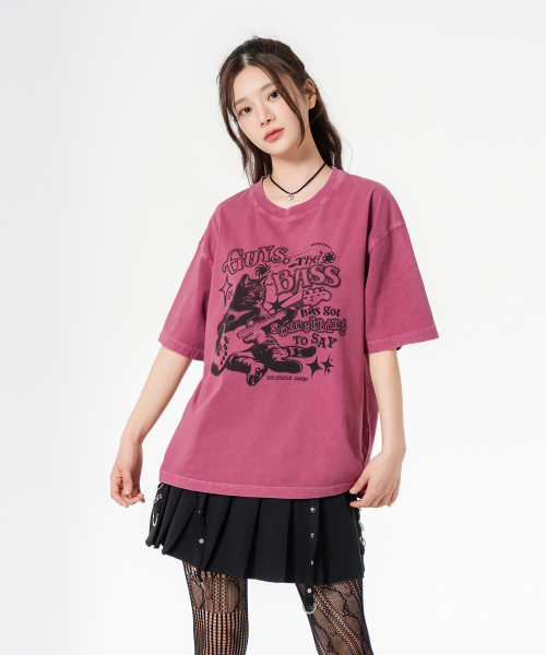 썸씽베이스 오버핏 피그먼트 반팔 티셔츠 핑크