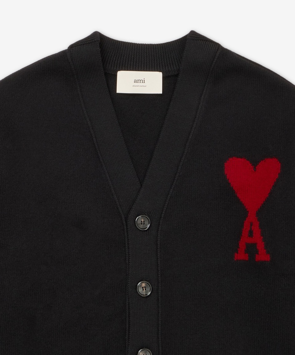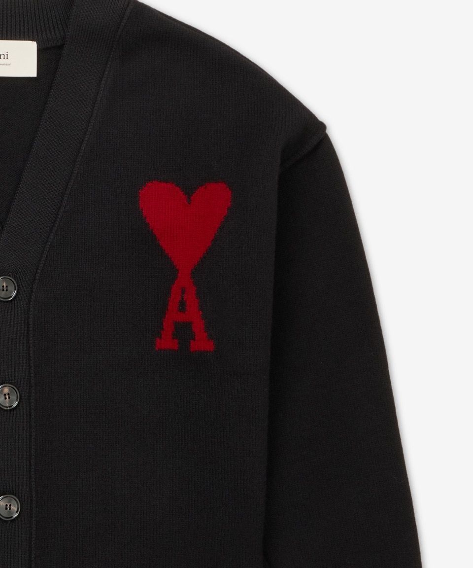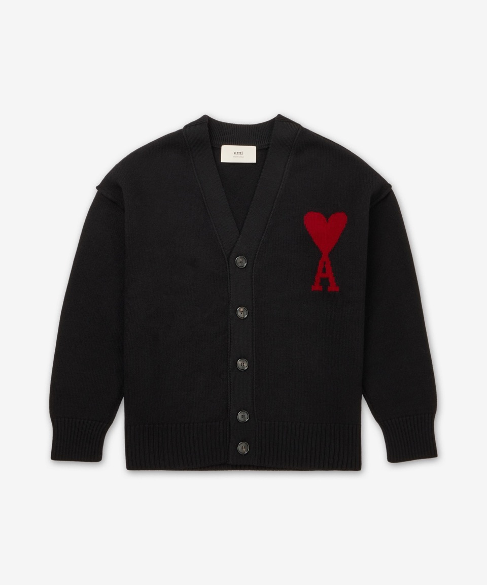 레드 하트로고 메리노 울 가디건 - 블랙 / BFHKC111KN0025001