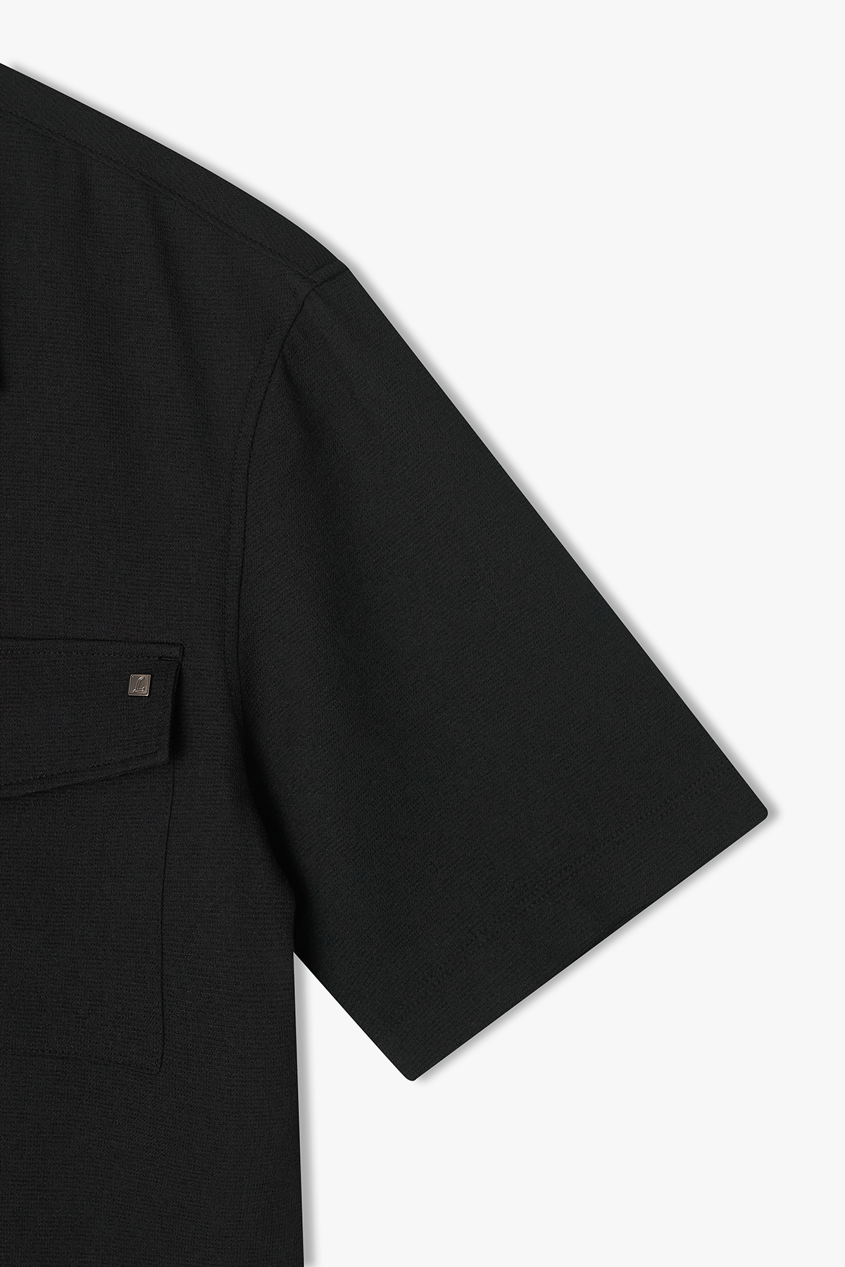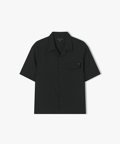 [25SS] LLM31511 블랙 와플조직 오픈카라 반팔 셔츠