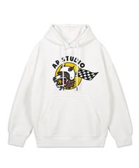 에이피 스튜디오 레이싱 도그 오버핏 와이드 숄더 후디_화이트