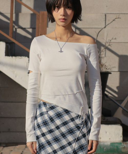 스트랩 원숄더 롱슬리브_아이보리