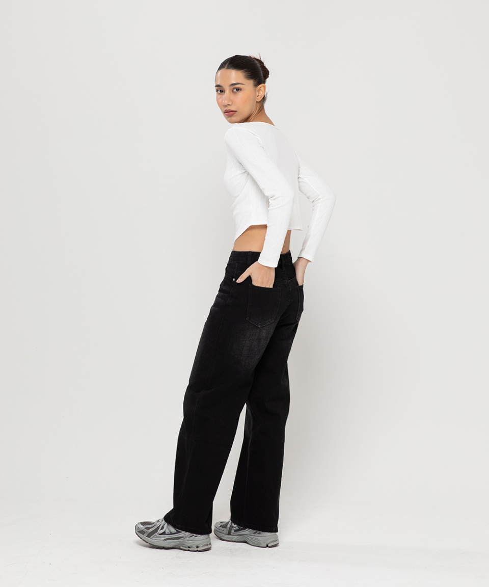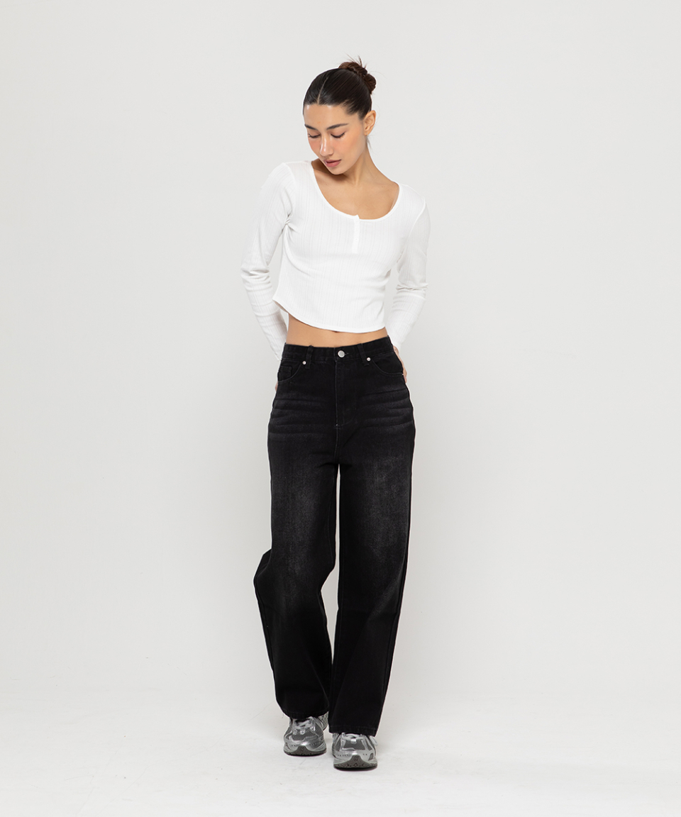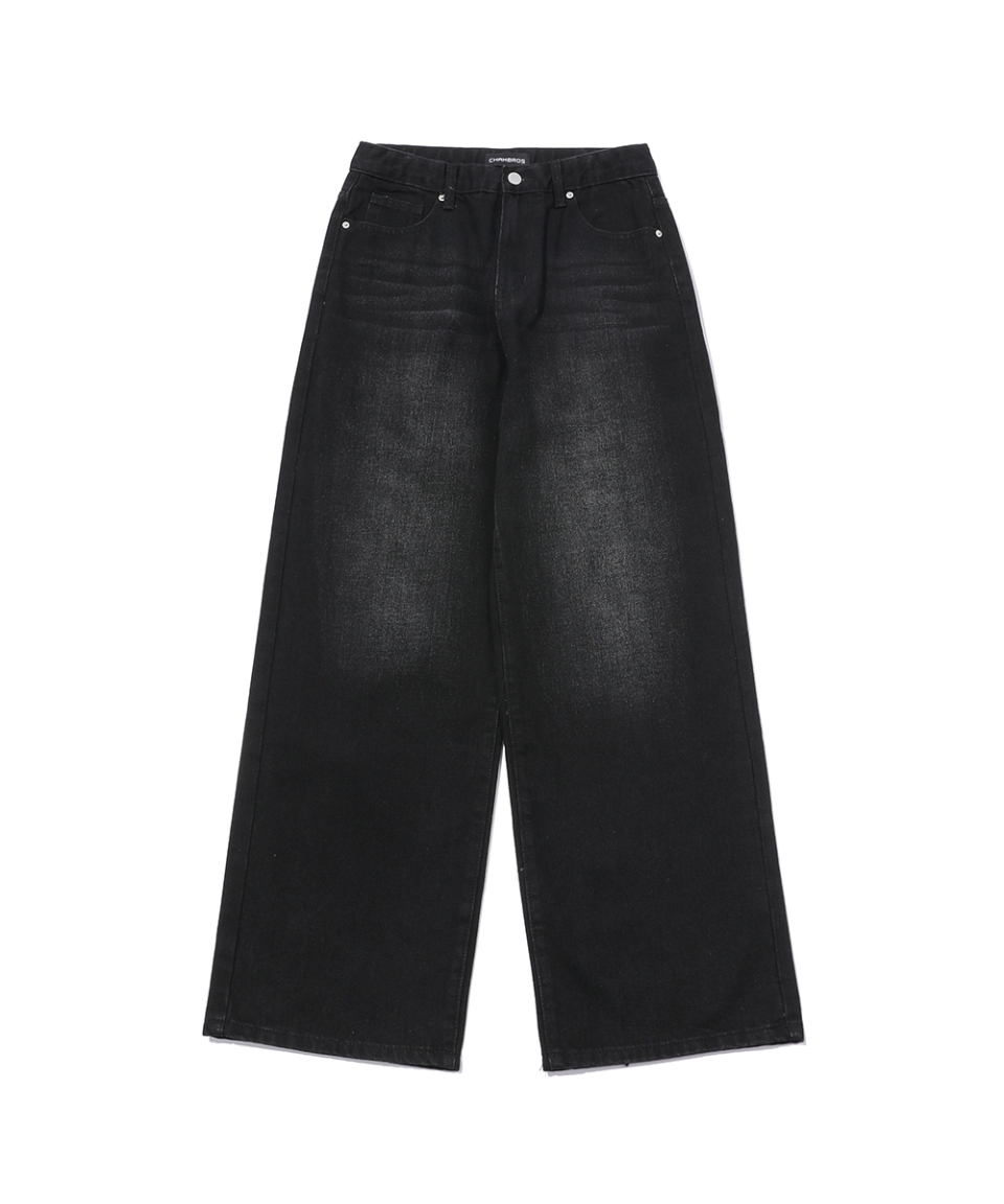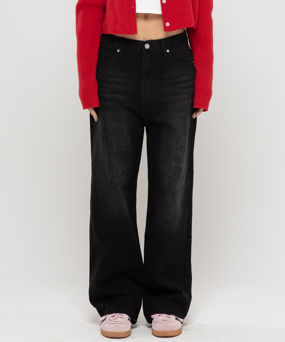 우먼즈 세미 와이드 워싱 데님팬츠[블랙]