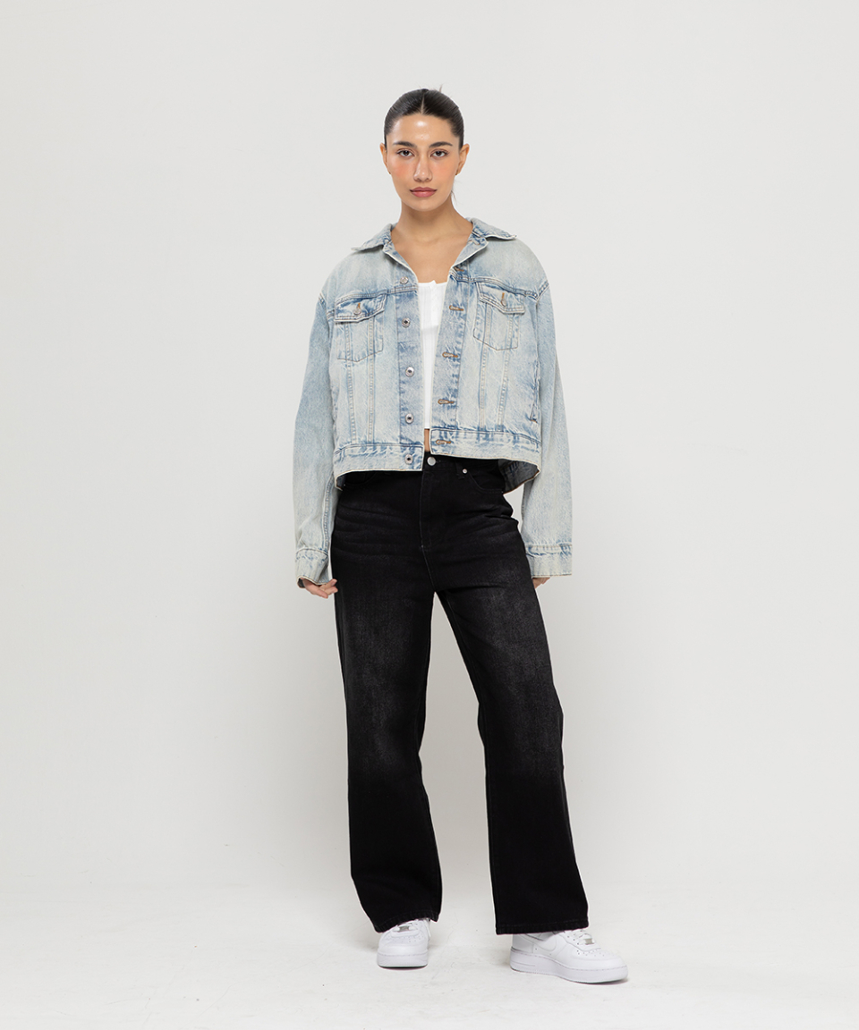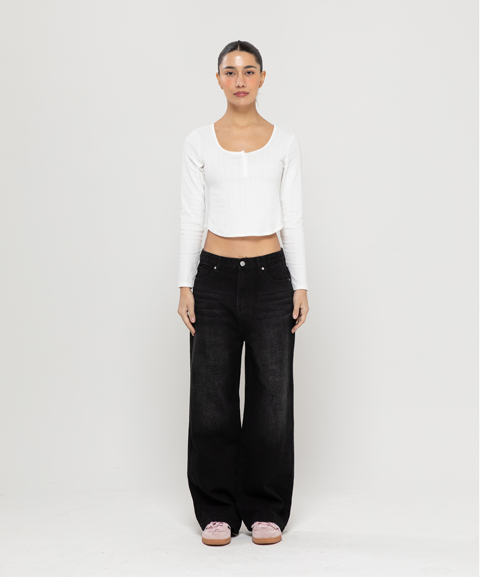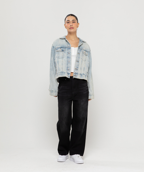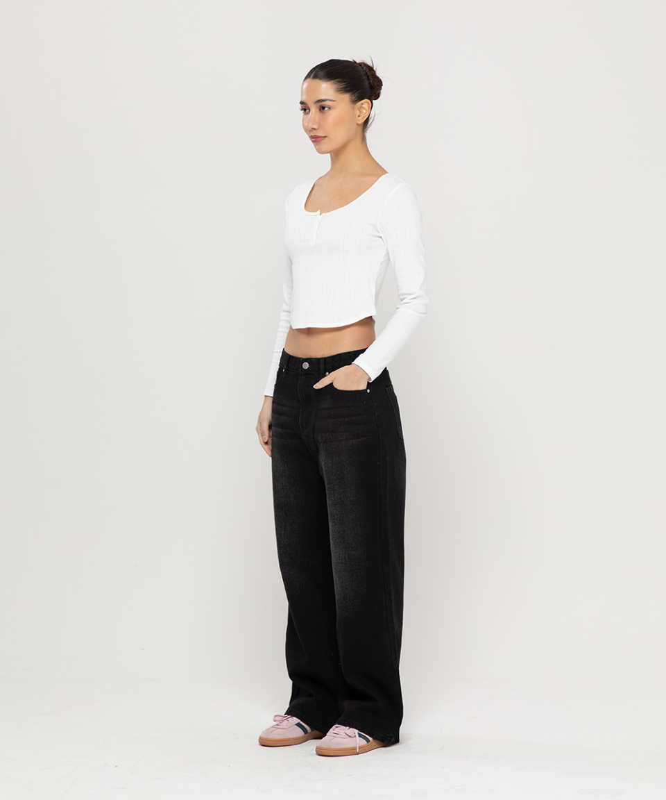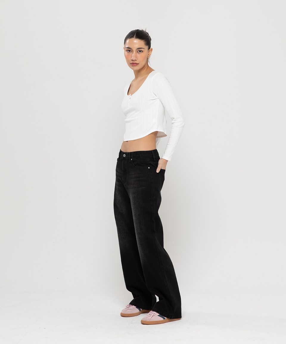 우먼즈 세미 와이드 워싱 데님팬츠[블랙]