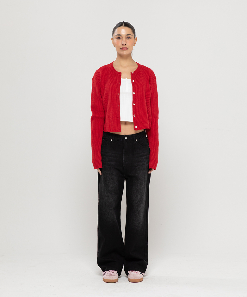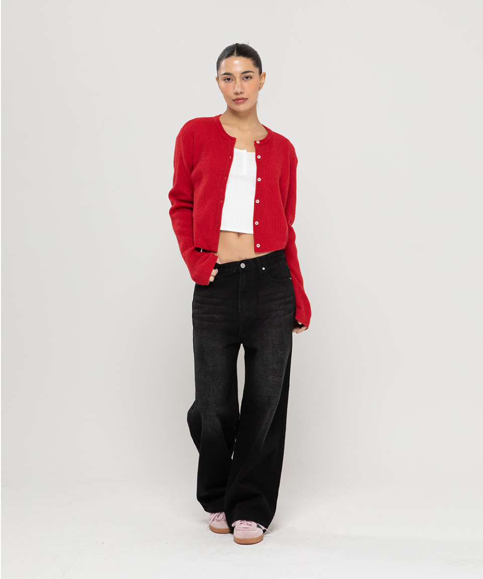 우먼즈 원턱 논페이드 와이드 데님팬츠[딥블랙]