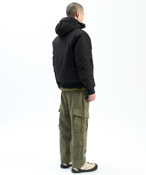 알파 인더스트리(ALPHA INDUSTRIES)는 1959년 테네시주 녹스빌의 한 공장에서 시작한 브랜드입니다. 미국의 육·해·공군 및 해병대원을 보호하는 플라이트 재킷이나 코트를 제공하는 공식 공급업체(오피셜 서플라이어)로 엄격한 밀스펙(군대에서 정해 놓은 기준)을 엄수하며 생산합니다. 특히 알파 인더스트리는 다른 업체와 달리 군수품과 일반인에게 판매되는 재킷에 등급의 차이가 없습니다. 알파 인더스트리의 제품은 미국은 물론 전 세계 각지의 미군 기지에서 활동하는 군인이나 파일럿, 지상 요원이 입는 재킷과 같은 그레이드의 아이템입니다.