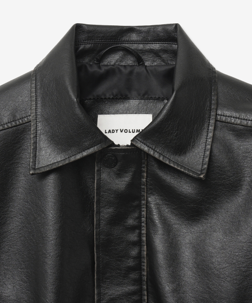 · 여유 있는 오버핏의 드롭숄더 빈티지워싱 레더 오버핏 자켓