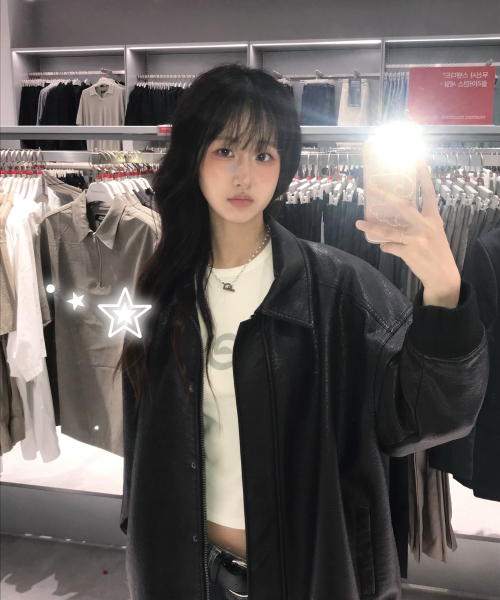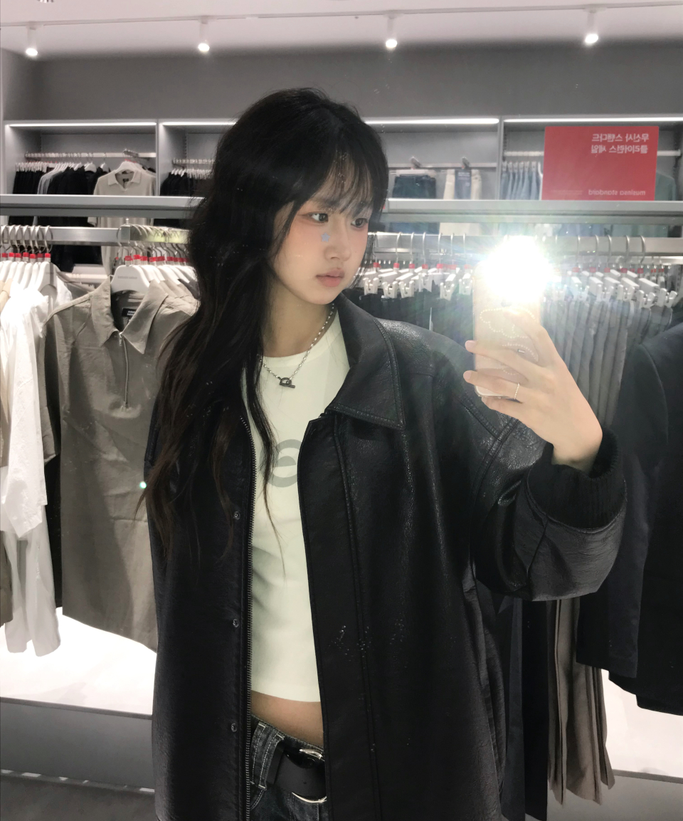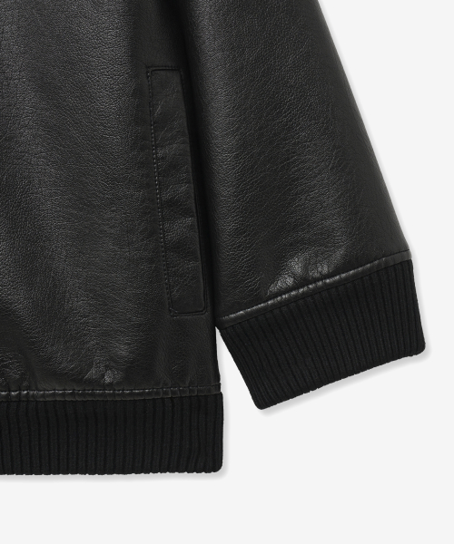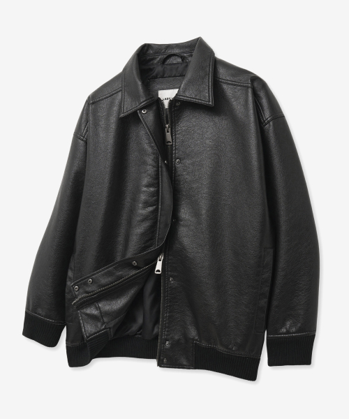 9185 워싱 레더 오버핏 블루종 점퍼 (BLACK)