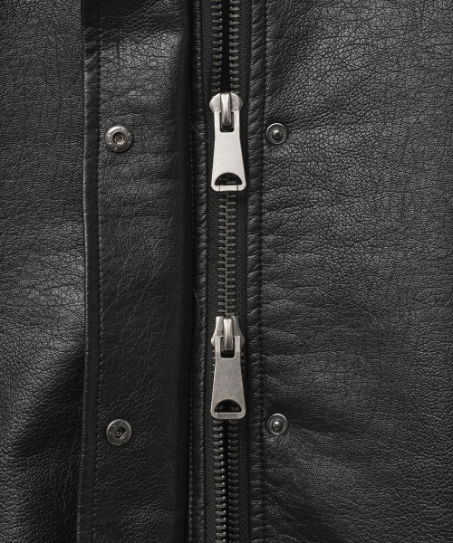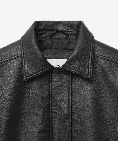 · 자연스럽게 떨어지는 드롭 숄더로 여유로운 오버핏 실루엣의 워싱 레더 블루종