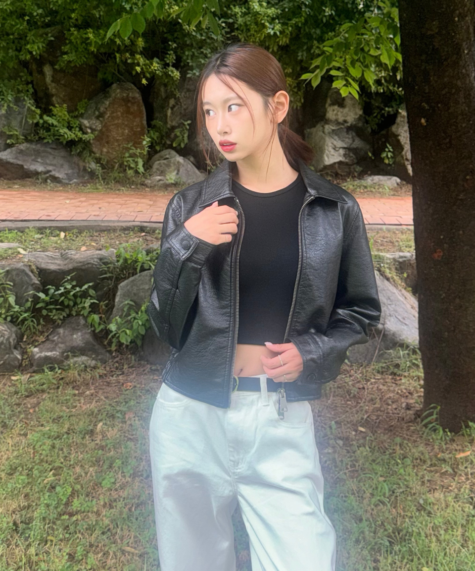 9177 워싱 레더 싱글 블루종 (BLACK)