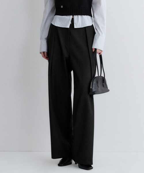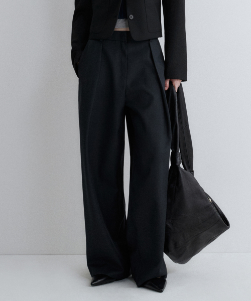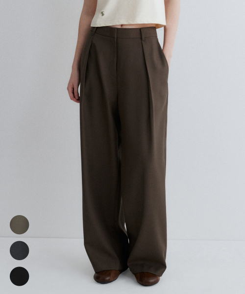 (우먼)울 원 턱 와이드 슬랙스 - 3 COLOR
