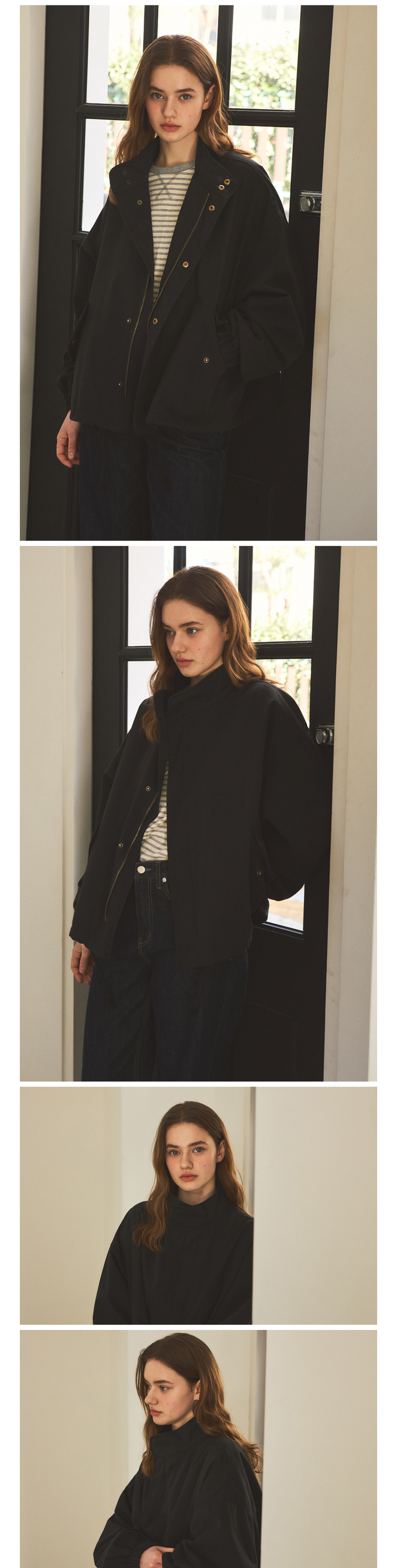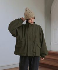 (woman) 스탠 하이넥 하프 야상_Khaki
