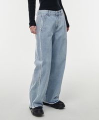 우먼즈 프레이 사이드 와이드 데님 팬츠 [라이트 인디고]