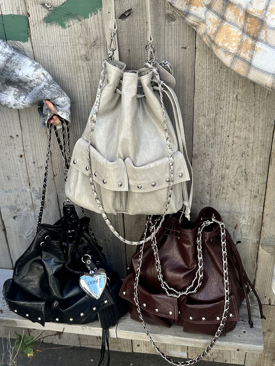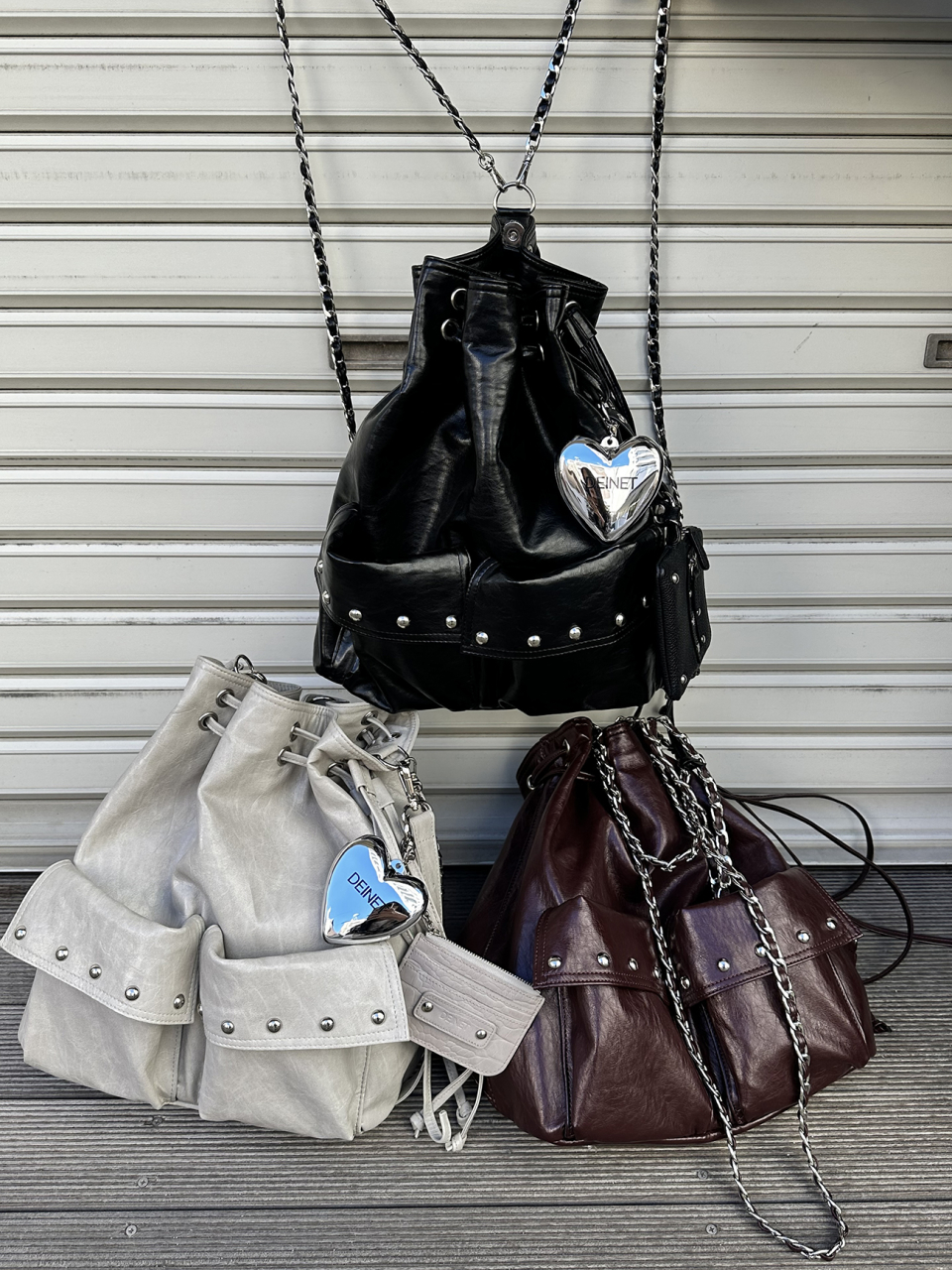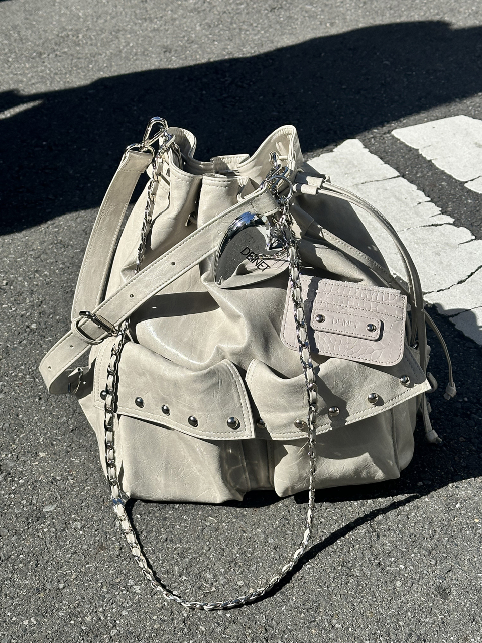 DEINET 5-WAY STUD POCKET MULTI BAG IN ASH BEIGE