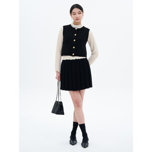 플리츠 디테일로 포인트를 더한 미니스커트입니다. 주름 디테일이 돋보이는 플리츠가 편안한 니트 소재와 어우러져 클래식한 무드를 배가합니다. 여러 코디에 활용하기 좋은 아이템입니다.