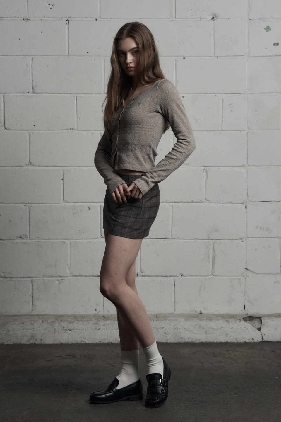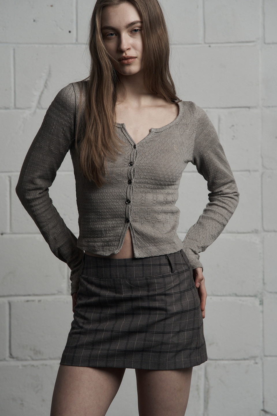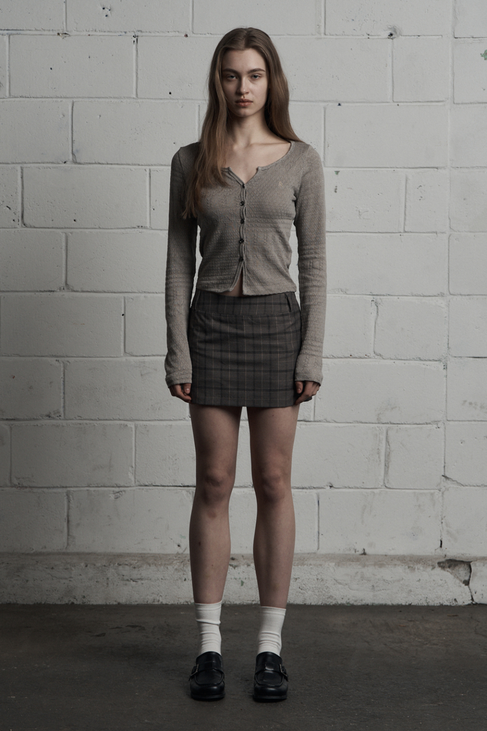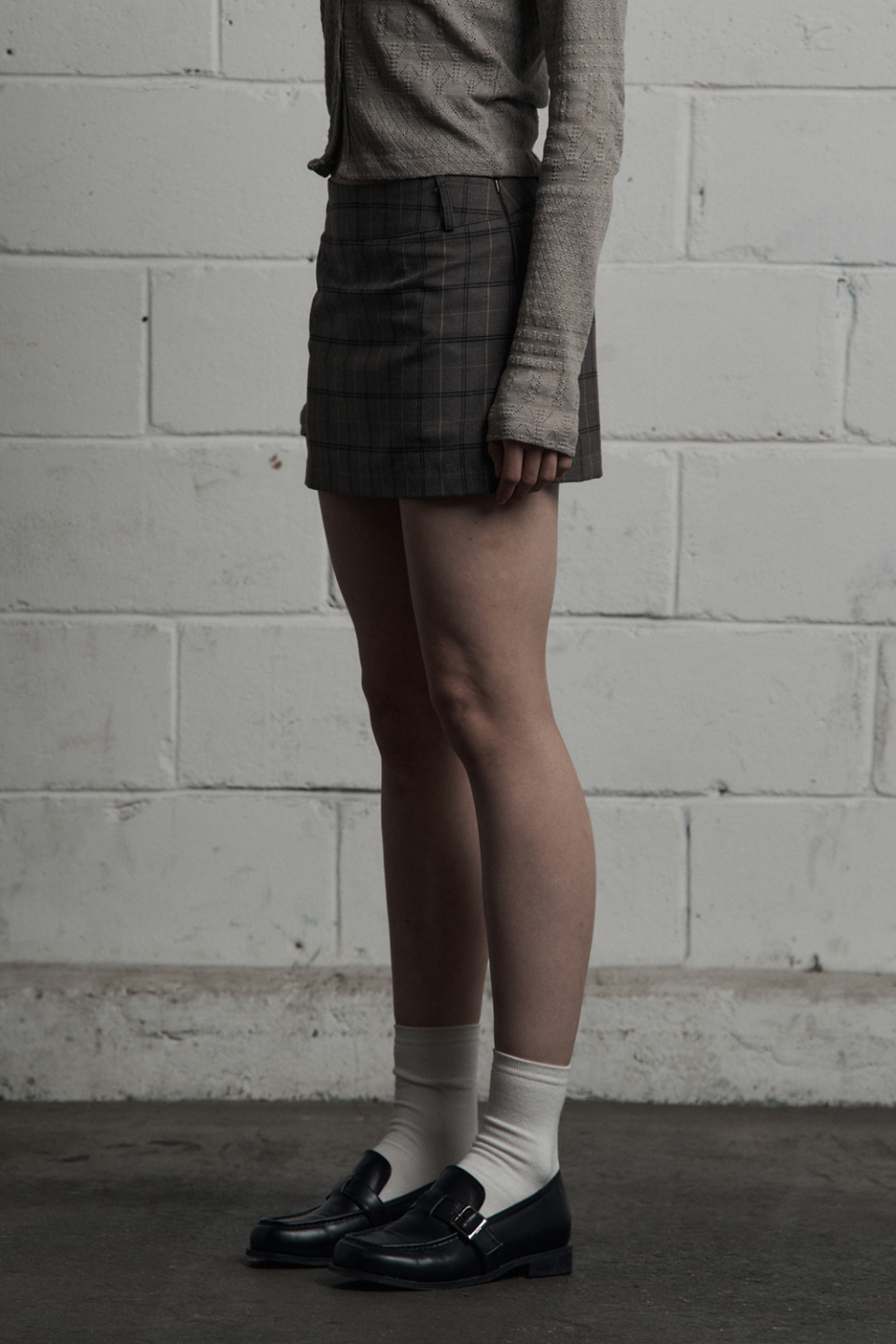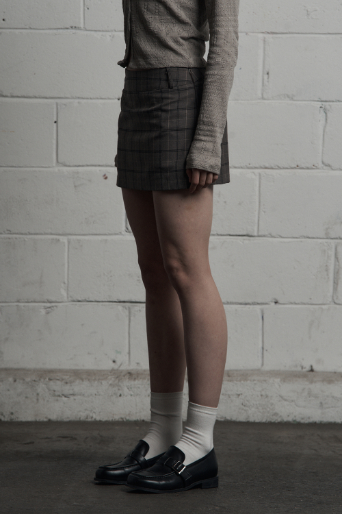 - 클래식한 무드의 체크 미니스커트