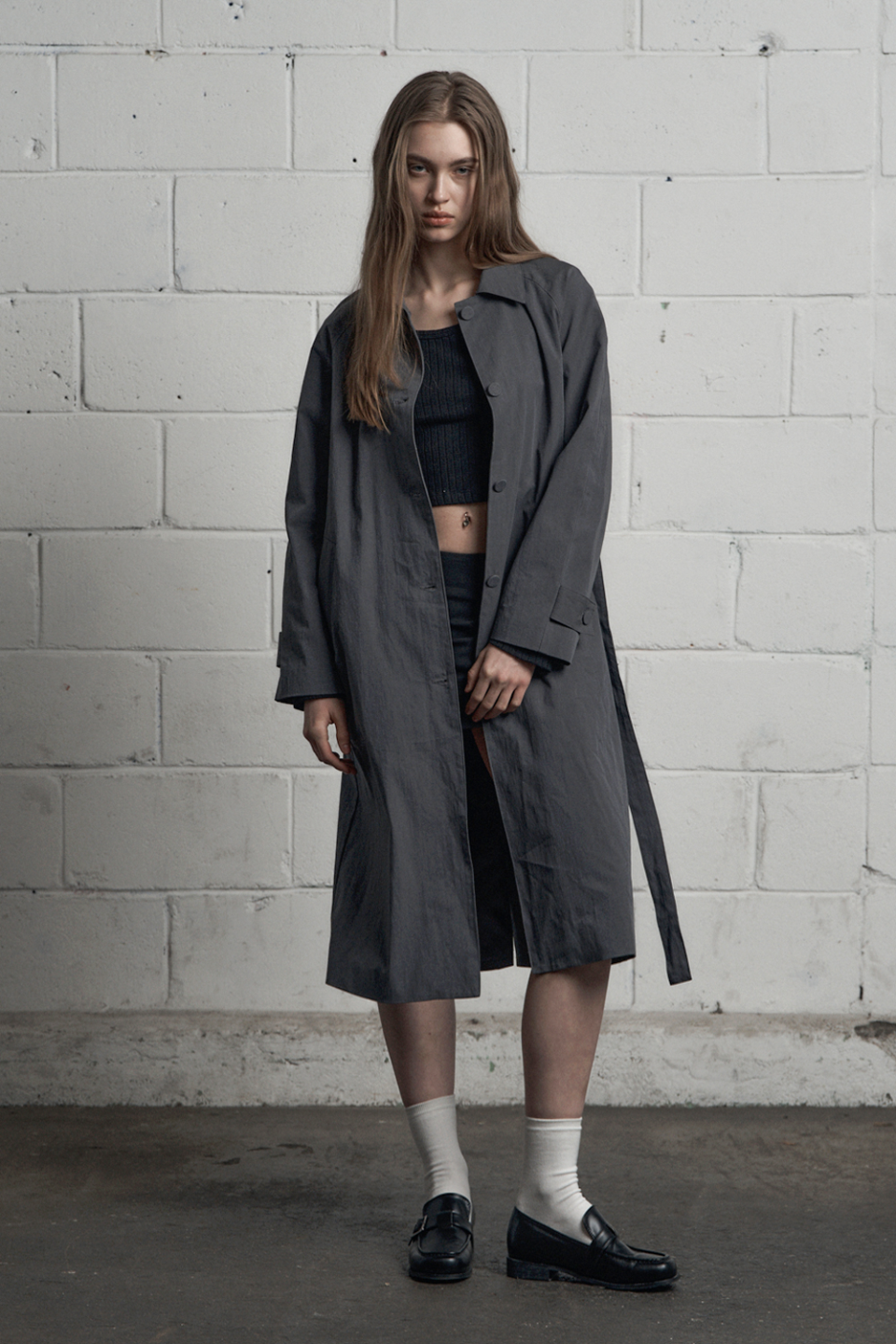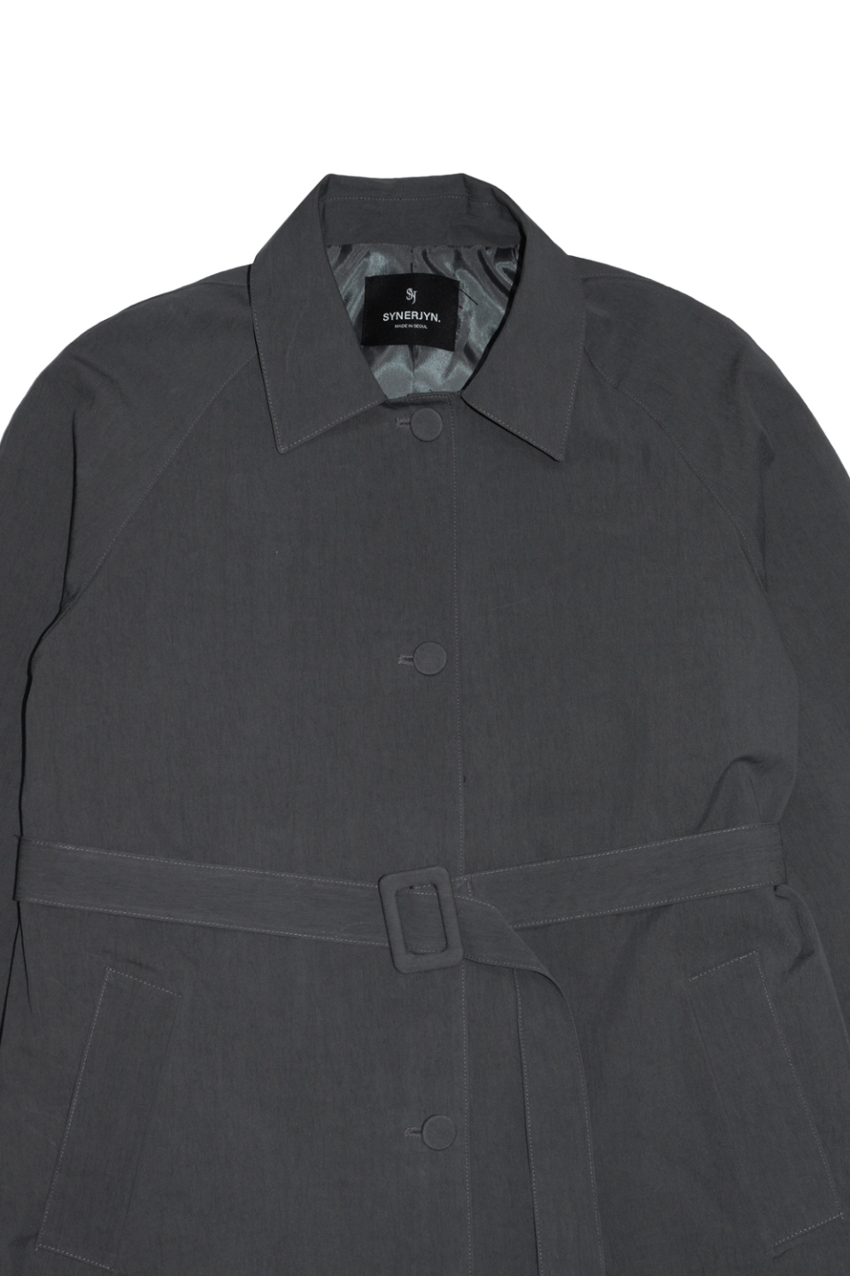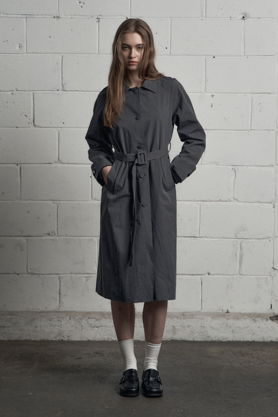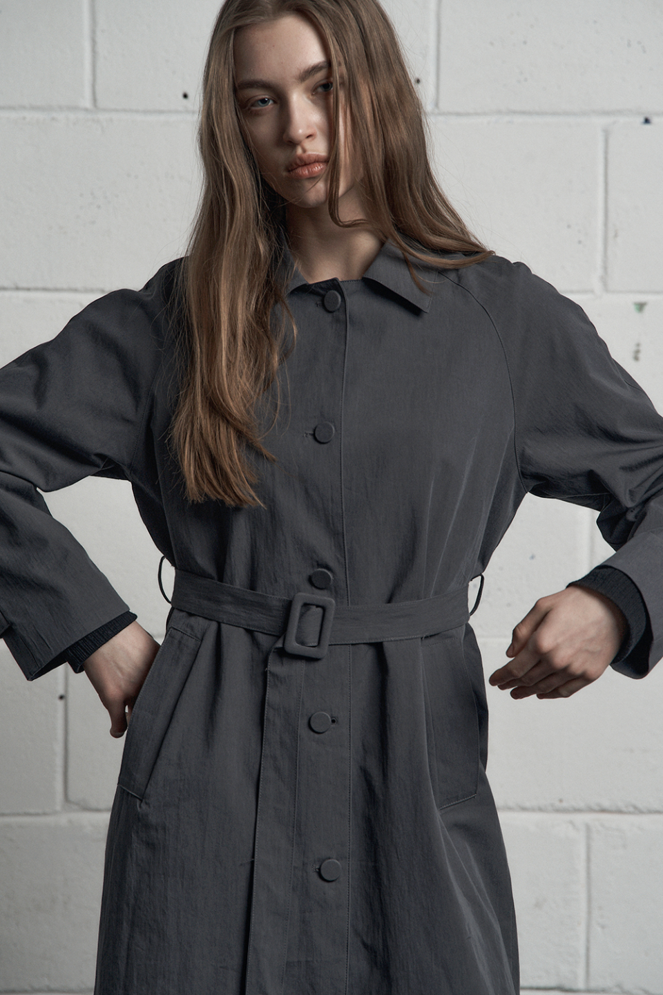 - 클래식한 디자인에 싸개 단추와 싸개 벨트로 우아함을 더한 카라 롱자켓