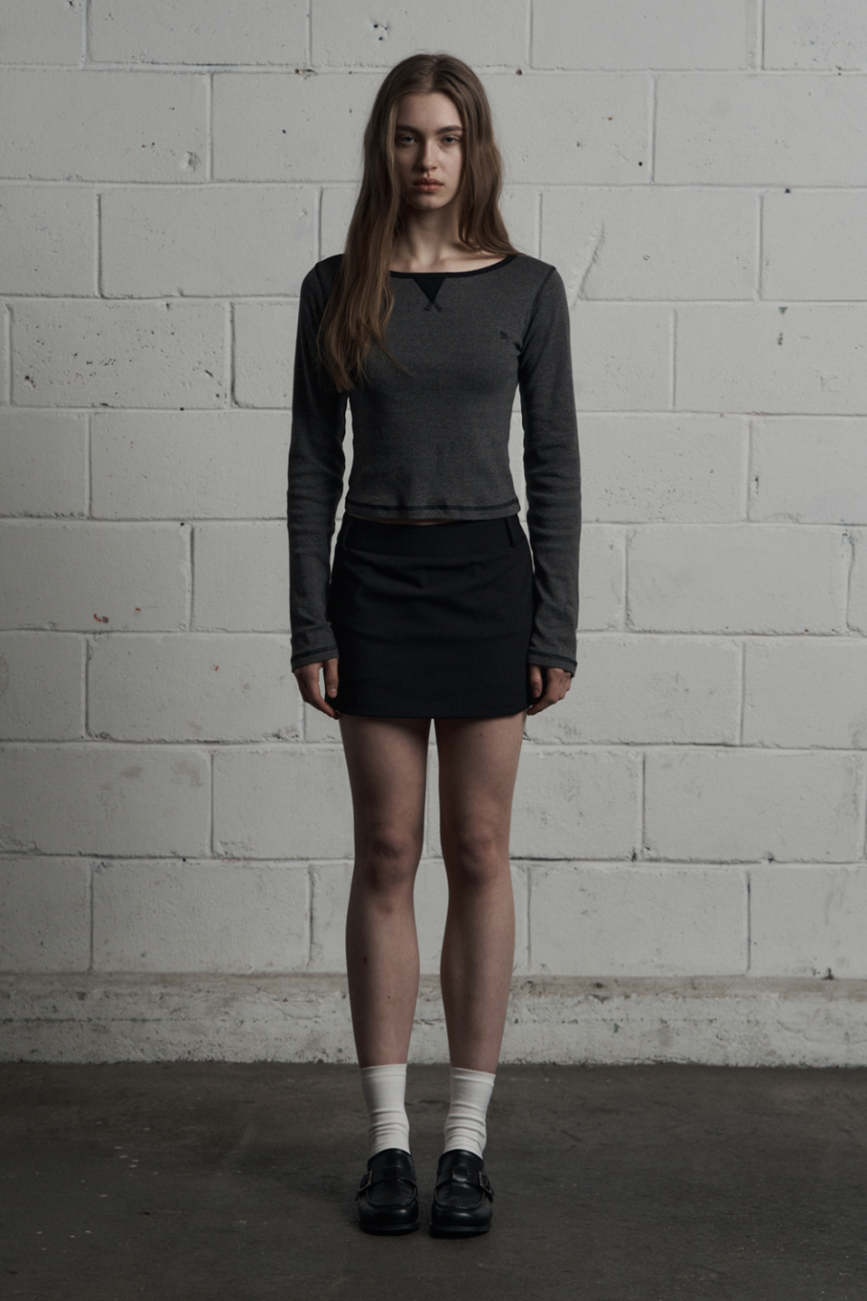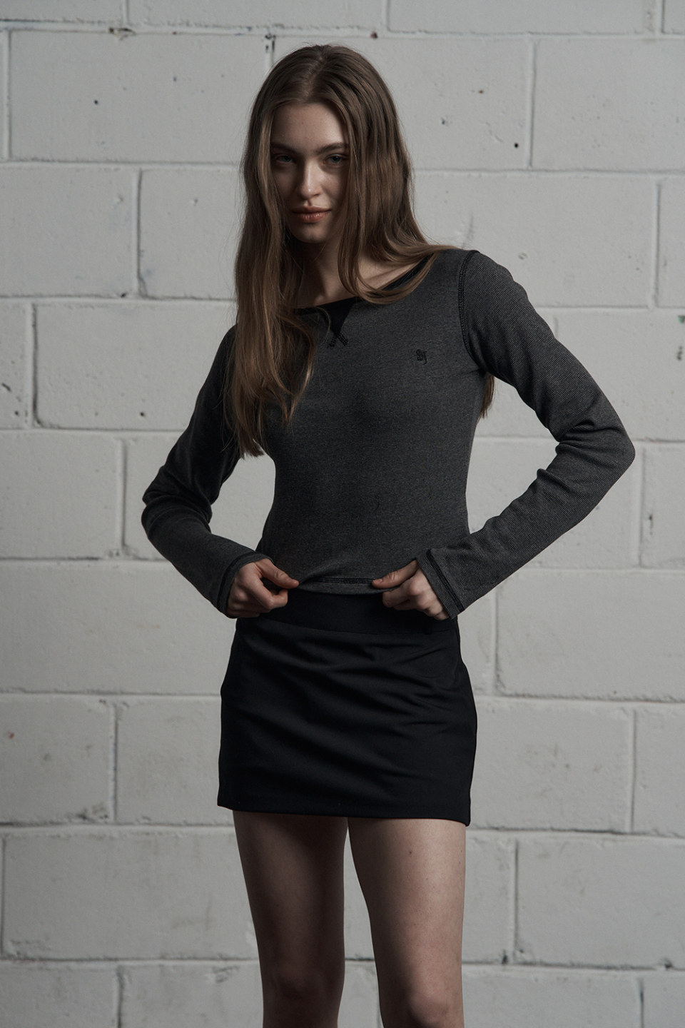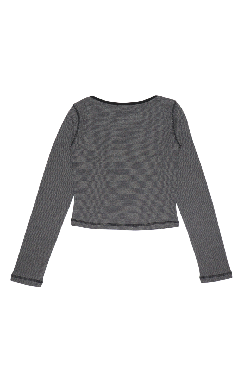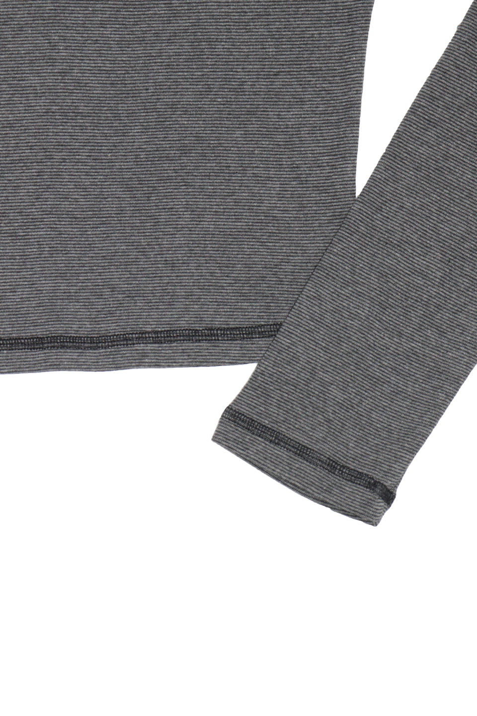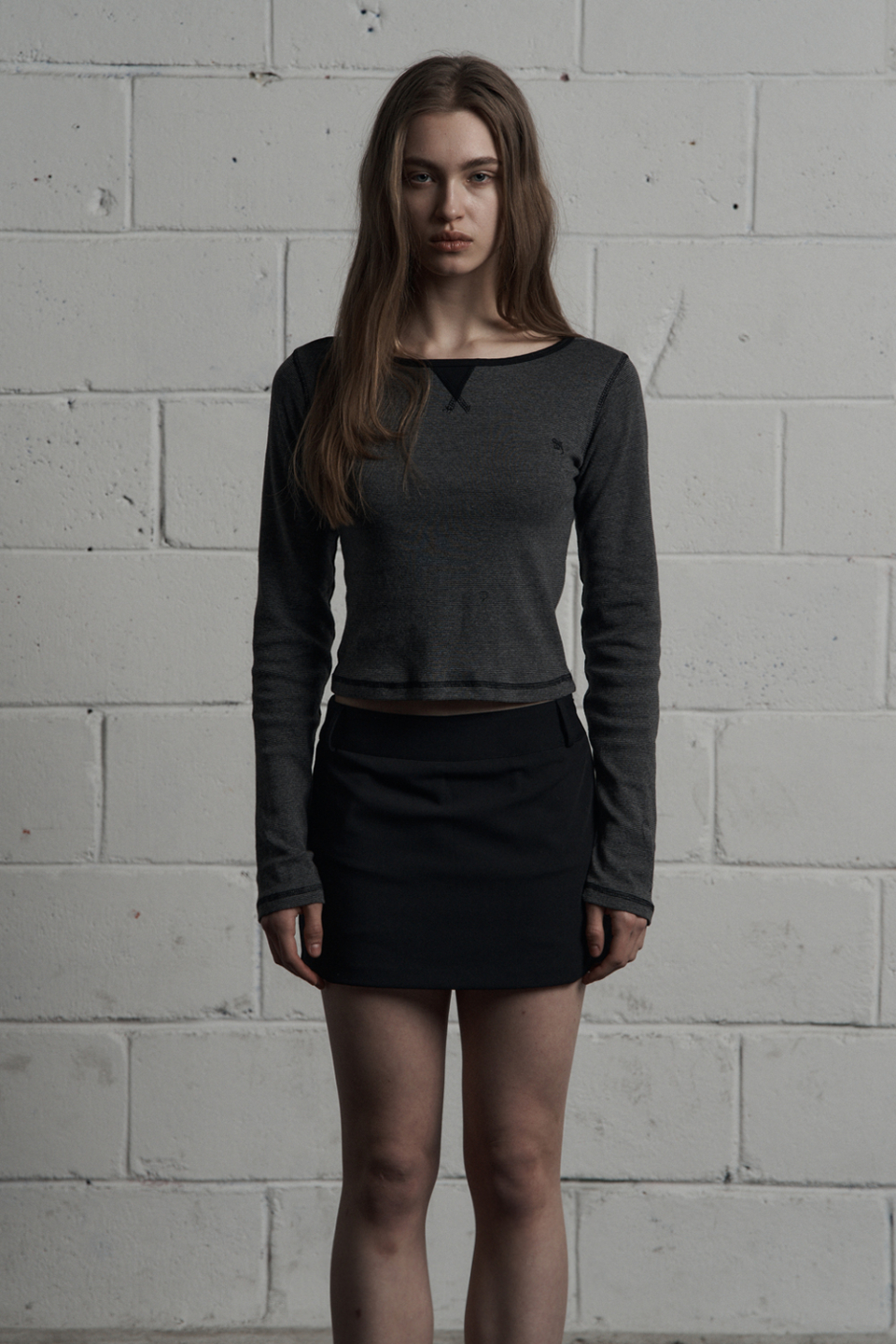 - 스트라이프 패턴에 스티치와 트라이앵글 배색 포인트를 준 보트넥 긴팔 티셔츠