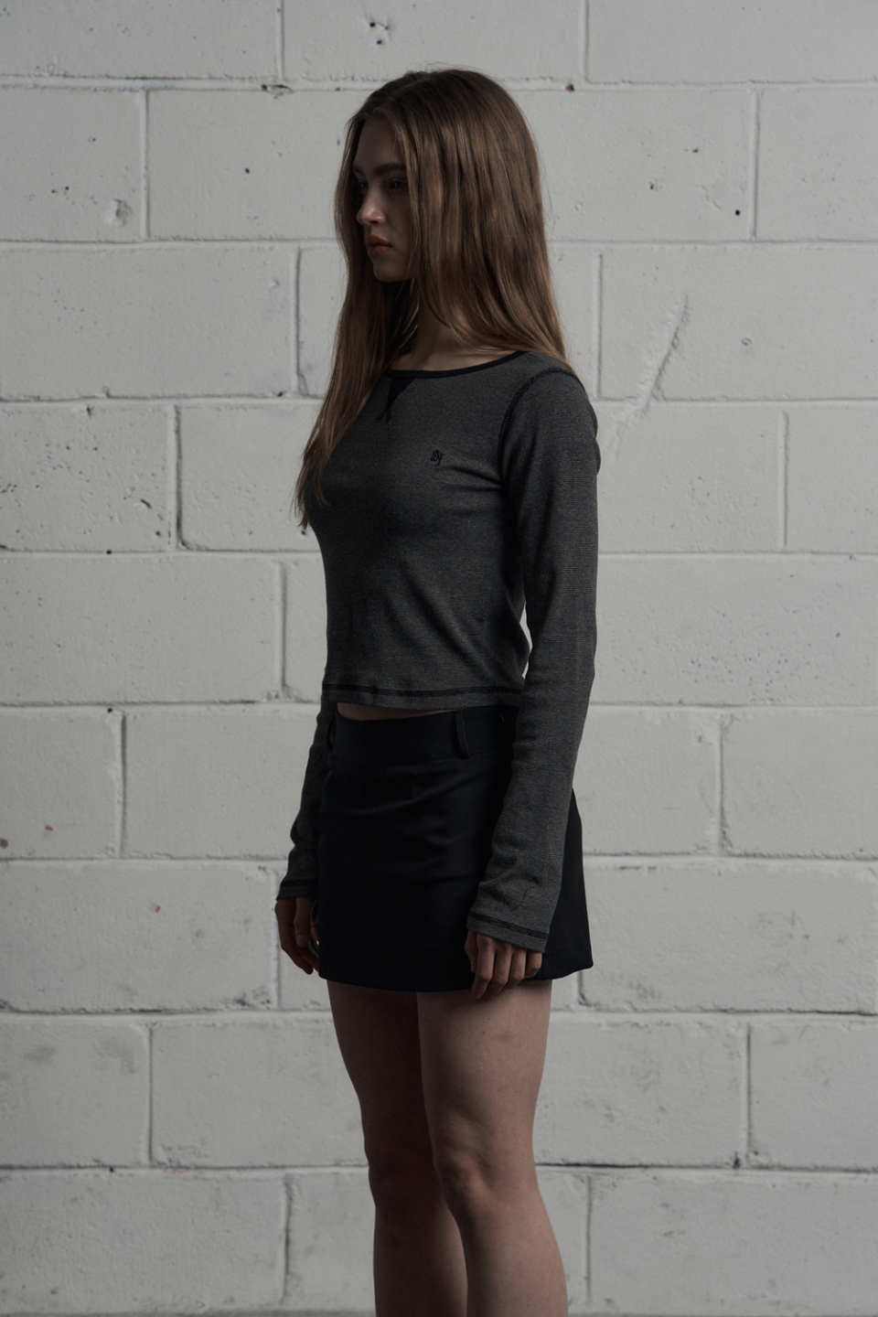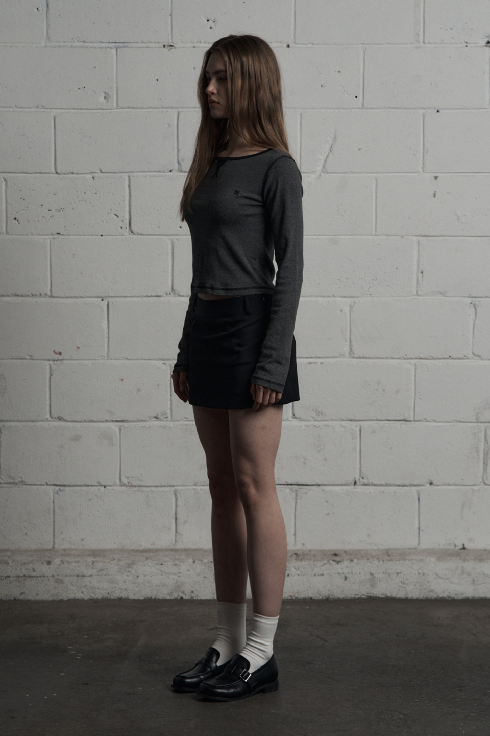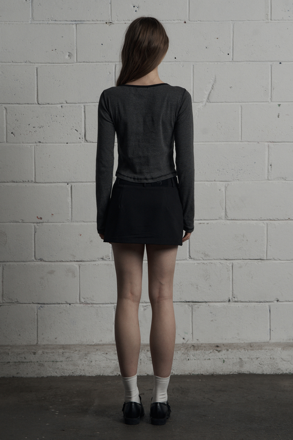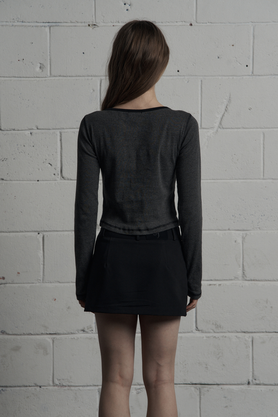 - 스트라이프 패턴에 스티치와 트라이앵글 배색 포인트를 준 보트넥 긴팔 티셔츠