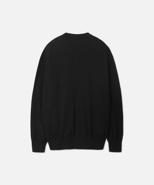 A : 티셔츠부터 셔츠, 얇은 터틀넥까지 어떤 이너와도 조화로운 라운드넥 디자인입니다. V넥 가디건보다 범용성이 높으며 슬랙스와 매치하면 깔끔한 비즈니스 캐주얼 룩을 완성할 수 있습니다.