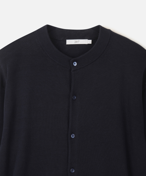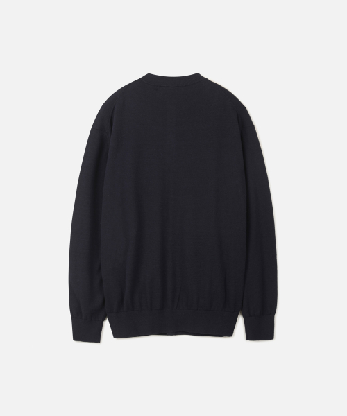 A : 티셔츠부터 셔츠, 얇은 터틀넥까지 어떤 이너와도 조화로운 라운드넥 디자인입니다. V넥 가디건보다 범용성이 높으며 슬랙스와 매치하면 깔끔한 비즈니스 캐주얼 룩을 완성할 수 있습니다.