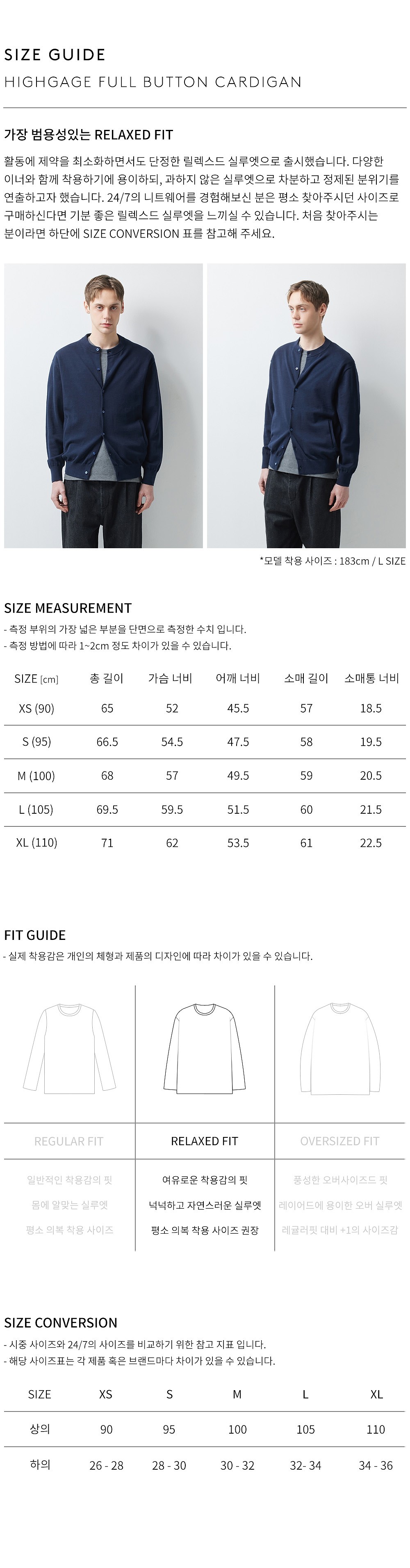 12게이지 니팅의 적당한 두께감으로 단독 아우터는 물론 이너로도 활용도가 높은 아이템입니다.