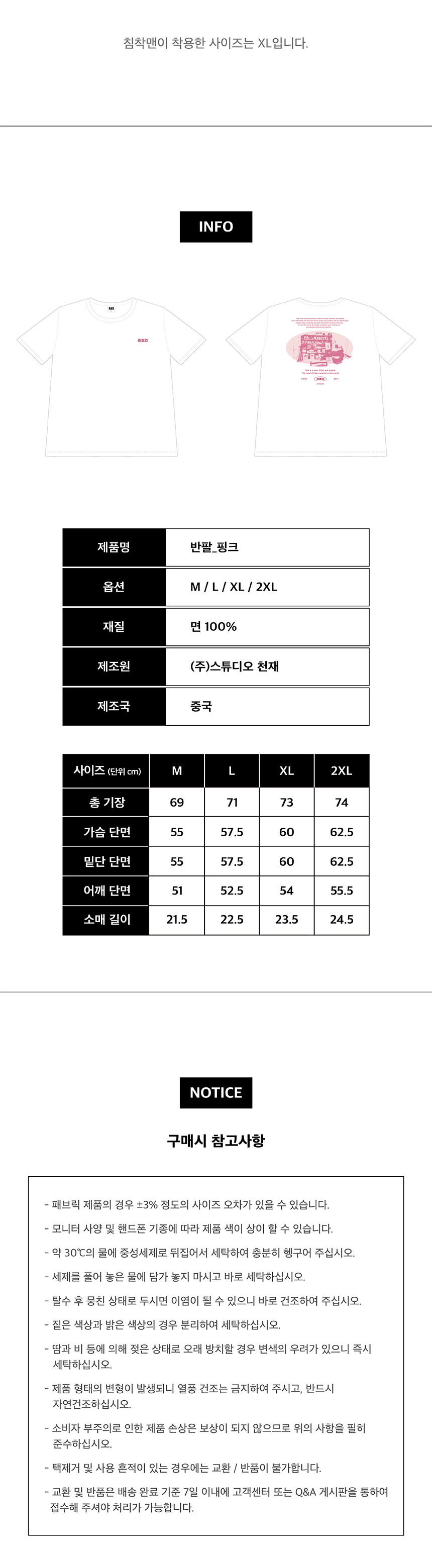 ㅊㅊㅁ 반팔 핑크