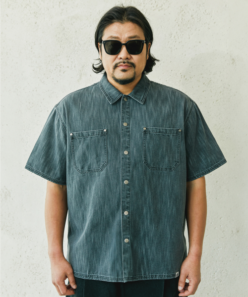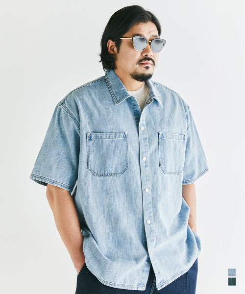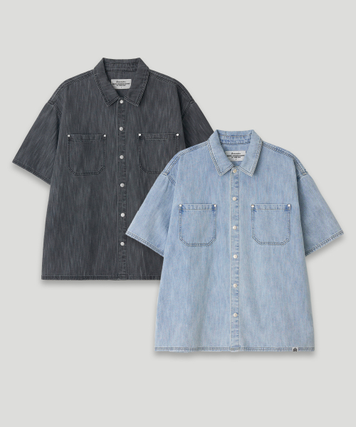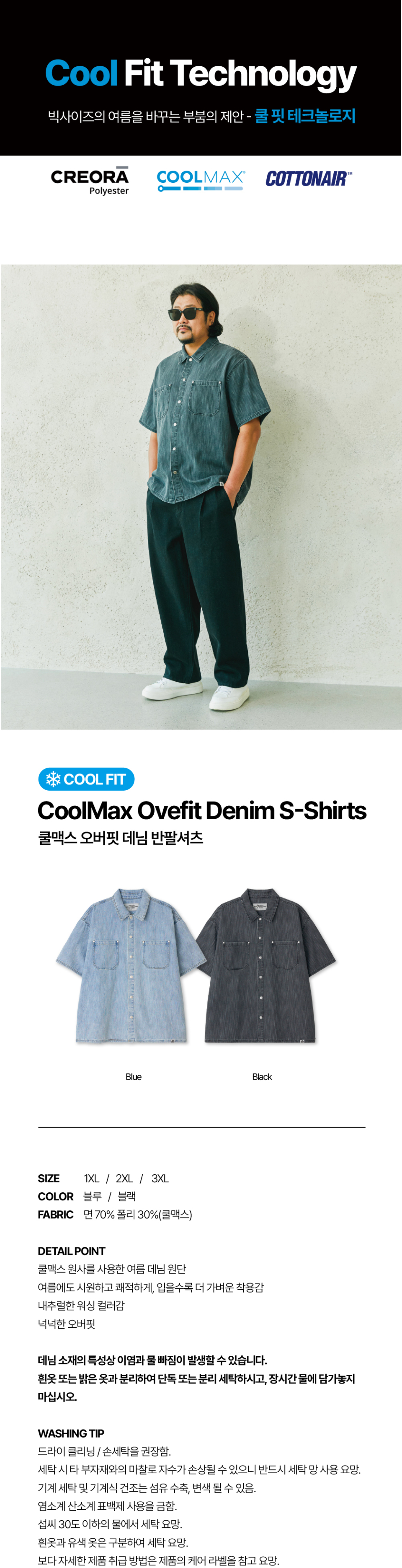 [빅사이즈]쿨맥스 오버핏 데님 반팔셔츠
