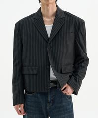 커스텀 3b 크롭 블레이저_스트라이프 블랙