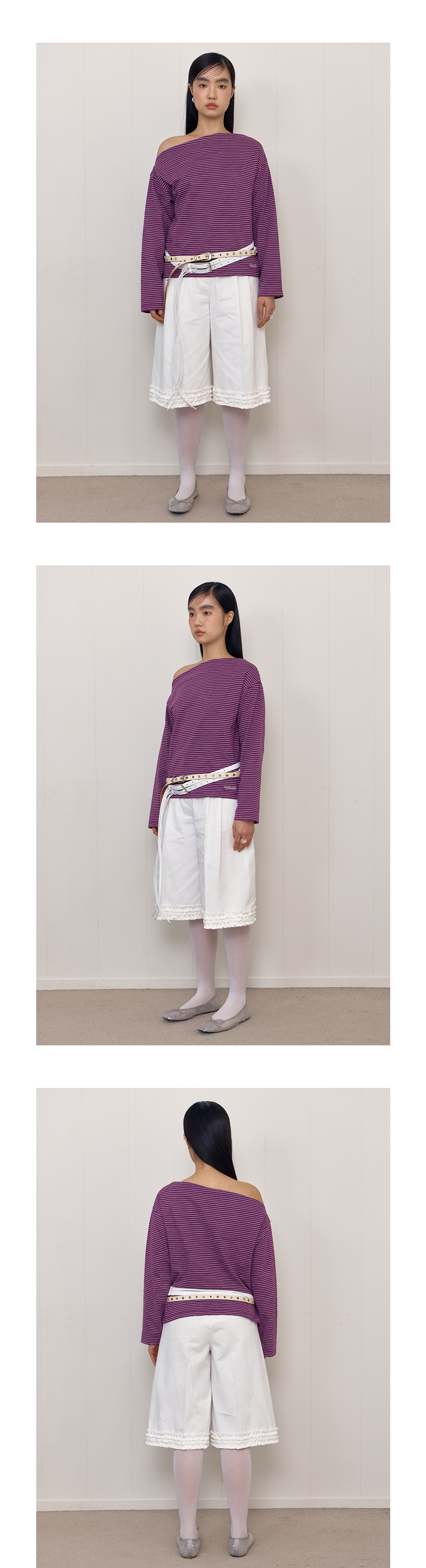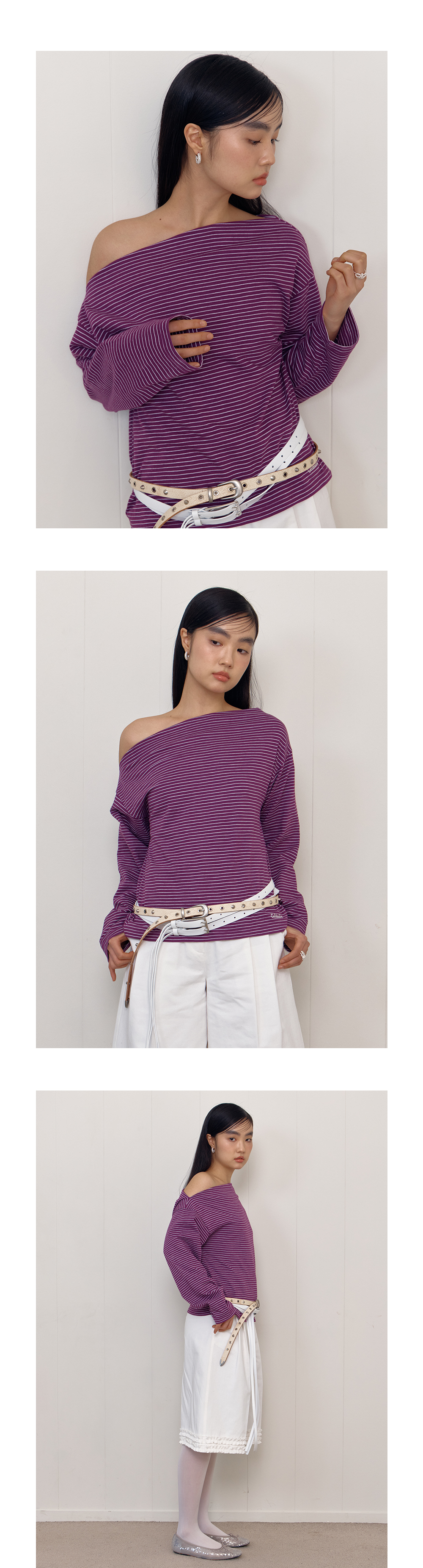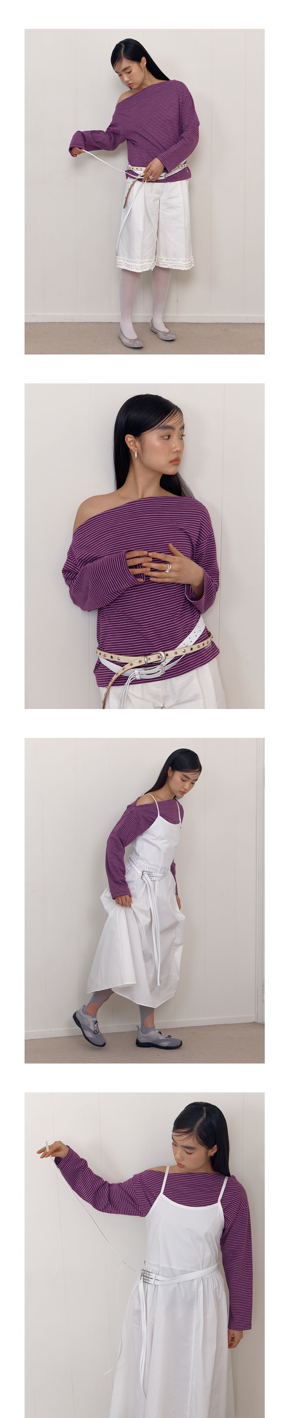 ONE SHOULDER STRIPE T-SHIRT_PURPLE