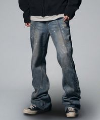 Curved Dirty Wash Bootscut Denim Pants - Deep Blue