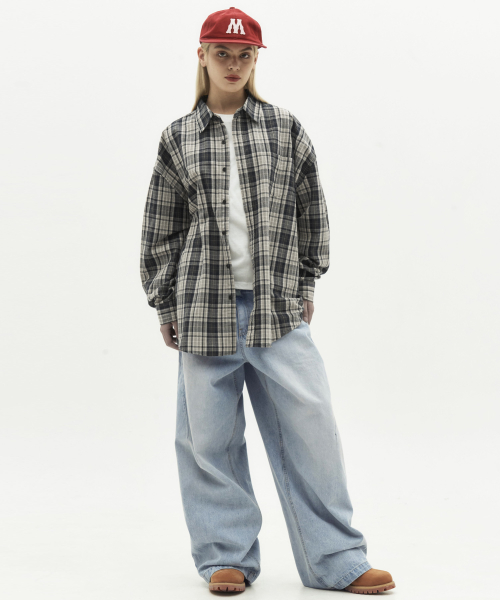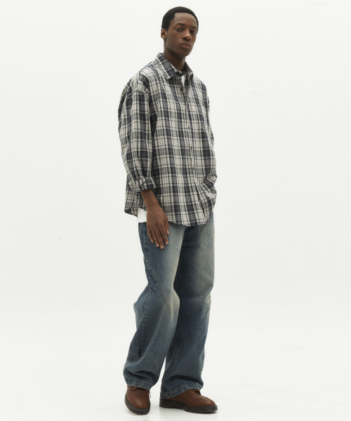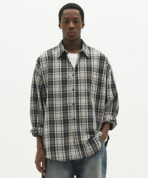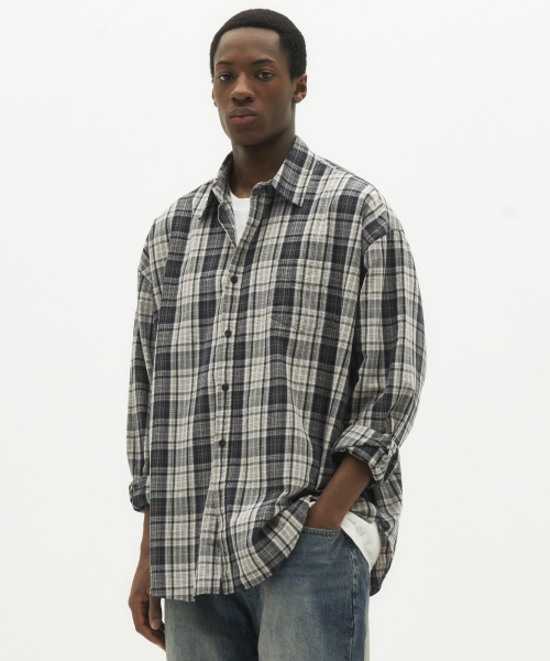 자이언트핏 몬스터 체크셔츠 (빈티지네이비)