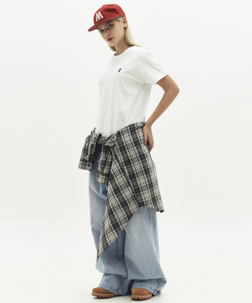 뒷밴딩 무지 워싱 와이드 데님 팬츠[인디고블루]