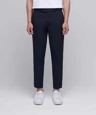 테이퍼드 턴업 히든 밴딩 크롭 슬랙스 [네이비]
