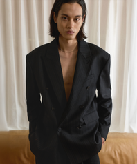 세빌 울 스트라이프 더블 블레이저 블랙
