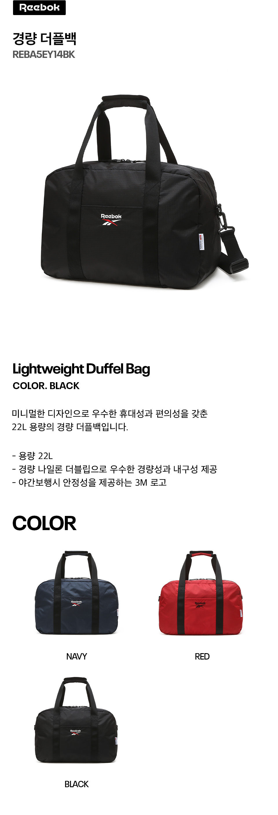 경량 더플백 - 블랙