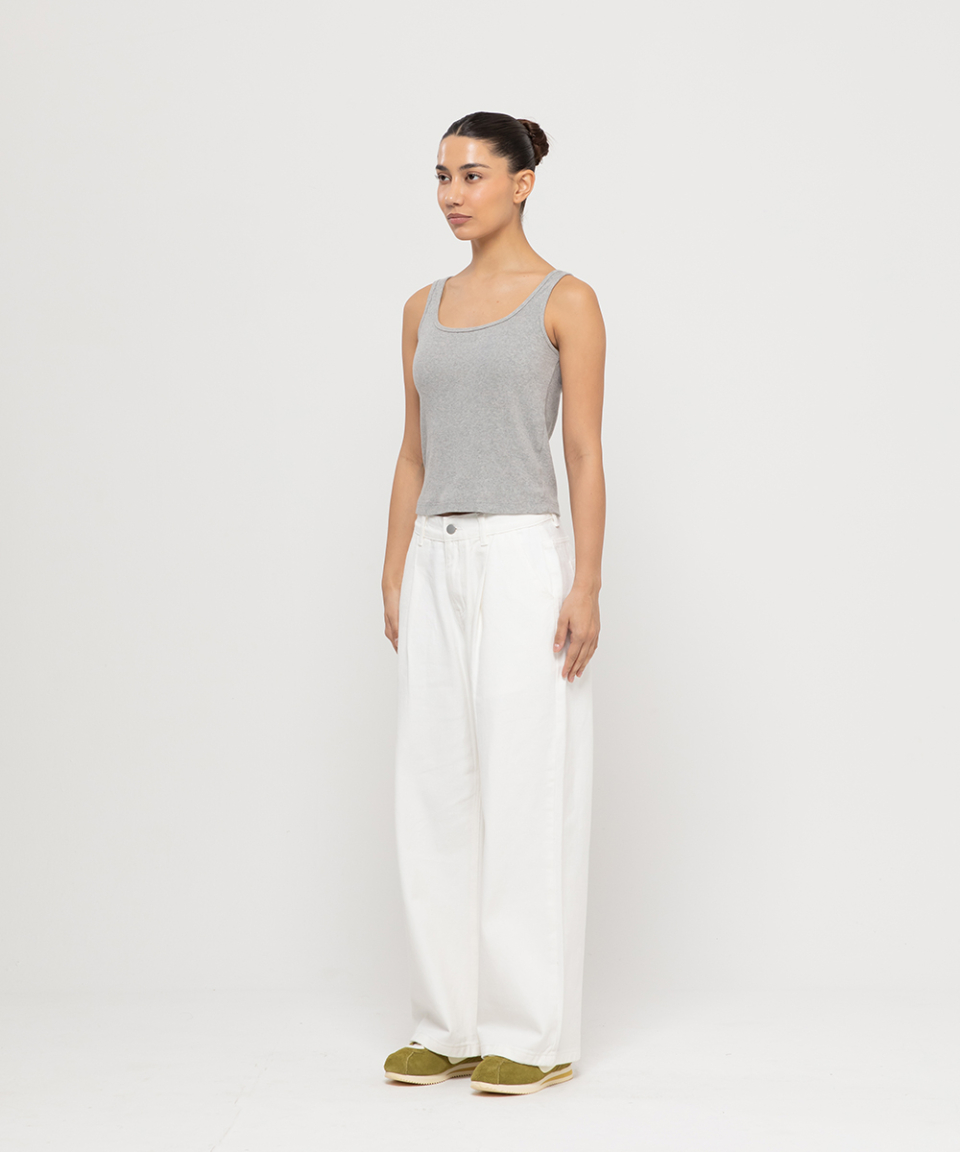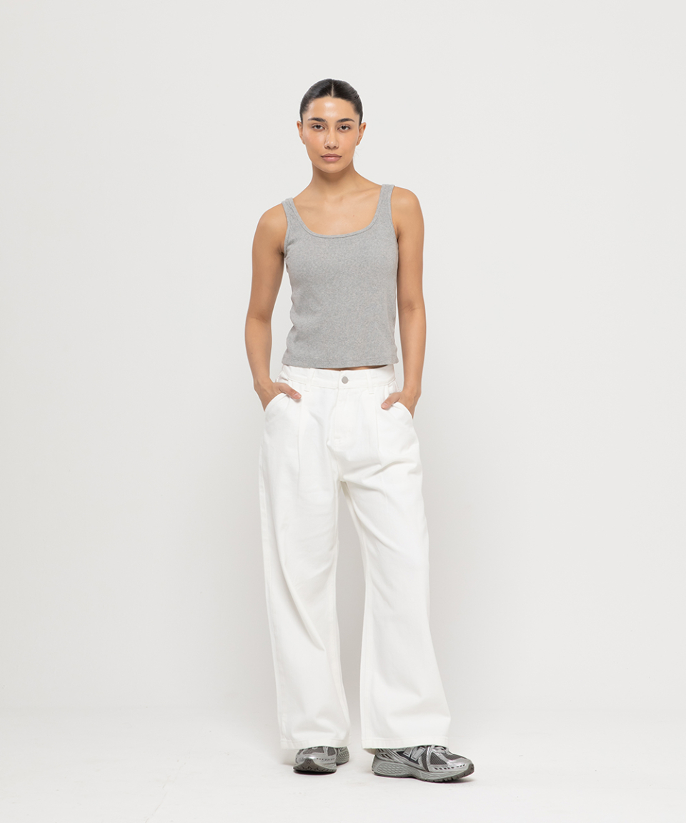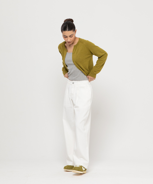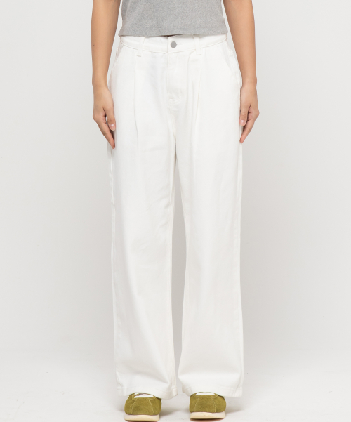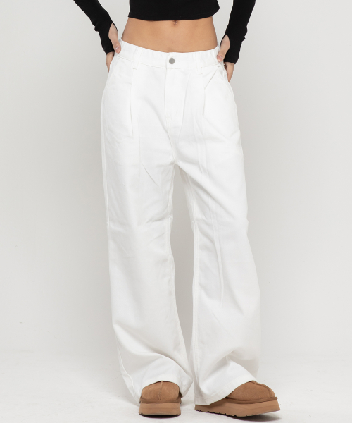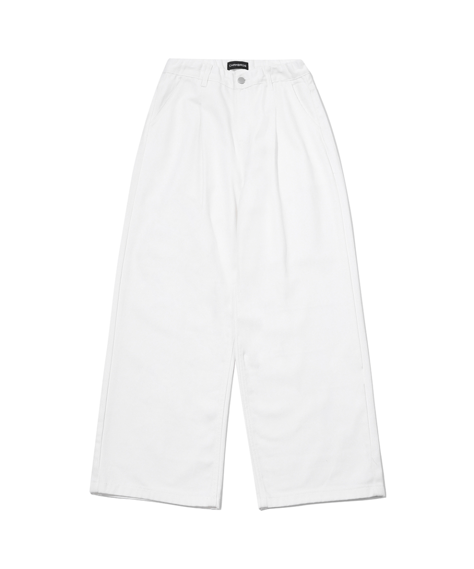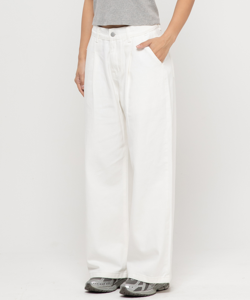 우먼즈 원턱 와이드 코튼 데님팬츠[화이트]