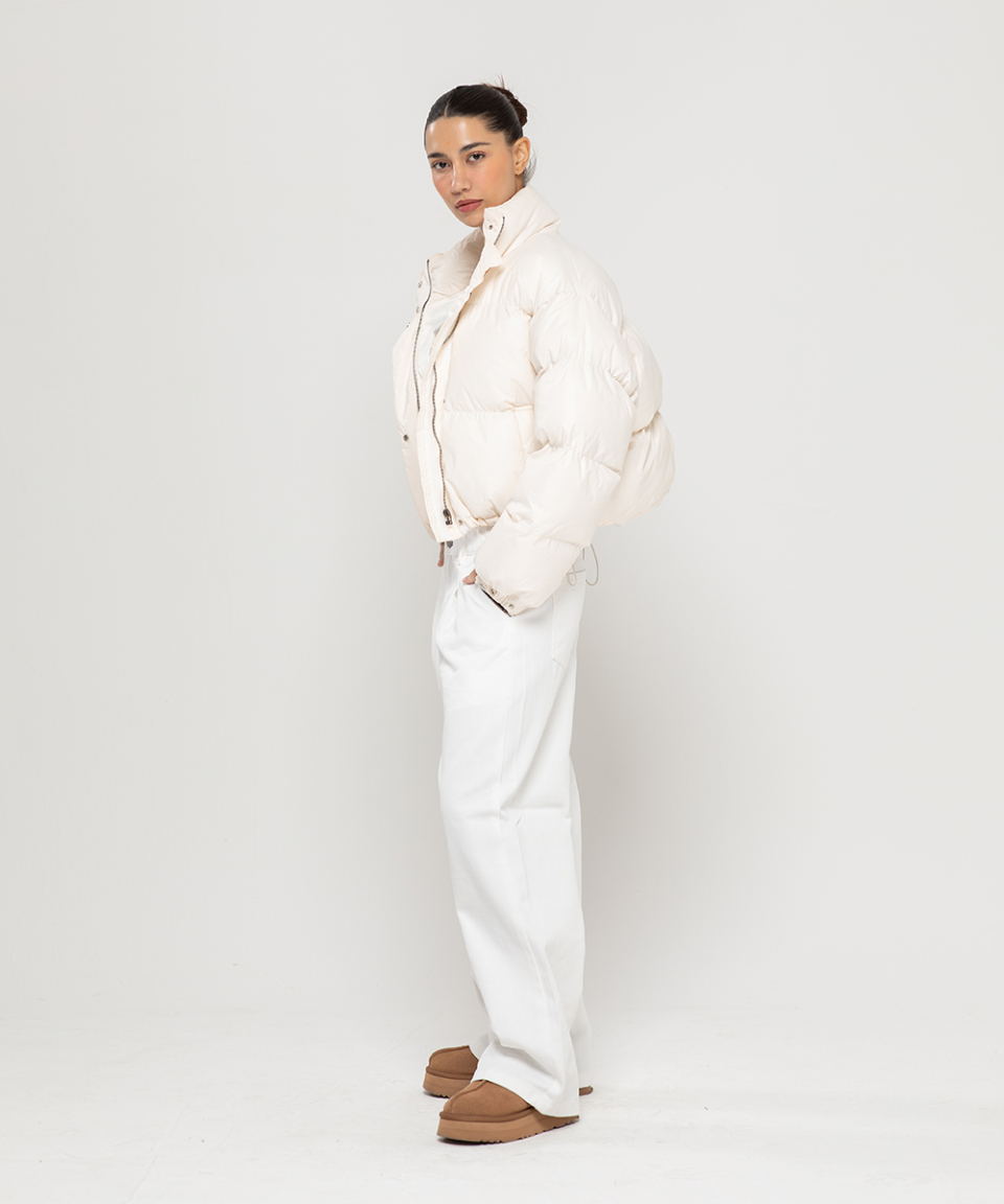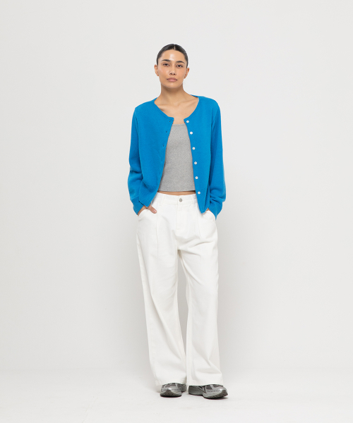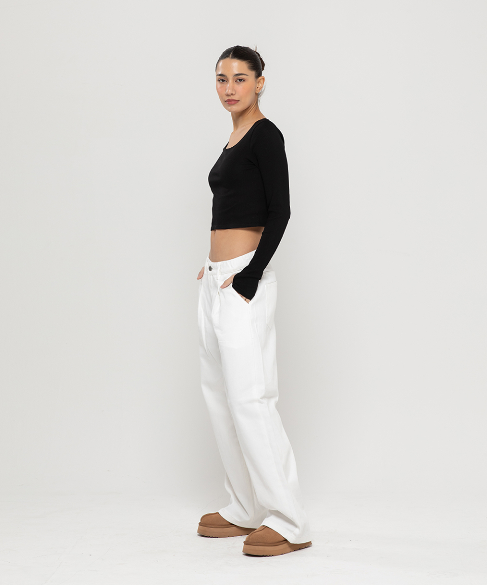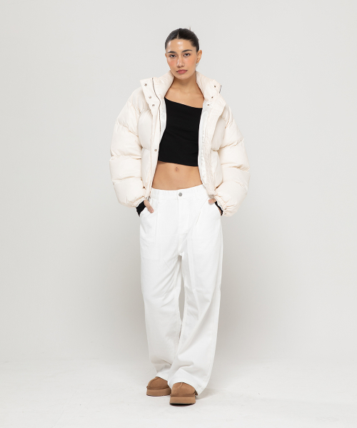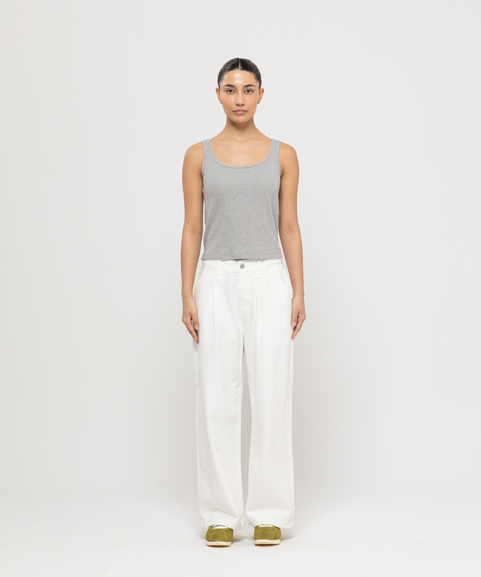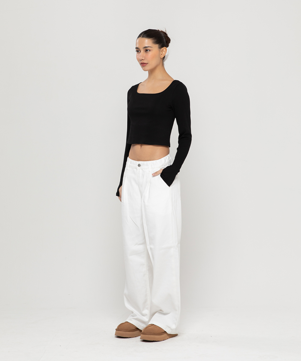 우먼즈 원턱 와이드 코튼 데님팬츠[화이트]