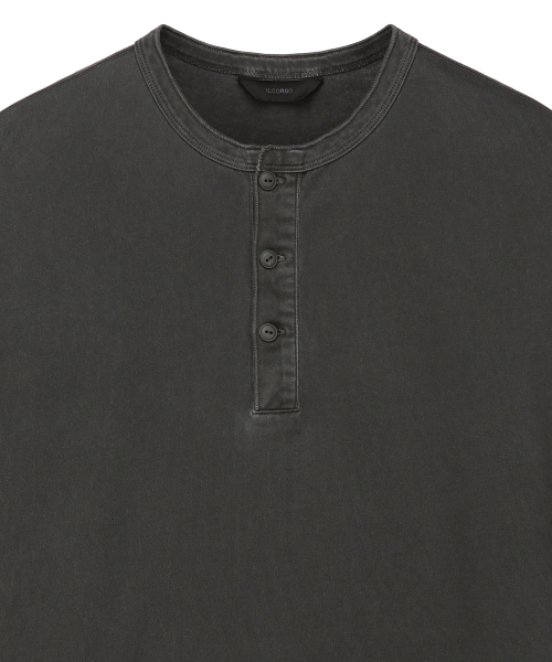 가먼트 다잉 헨리넥 반팔 티셔츠 차콜그레이 IETS5E405CG