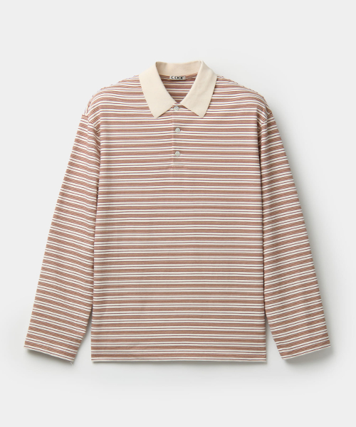 멀티컬러 스트라이프 폴로 셔츠 (레드)