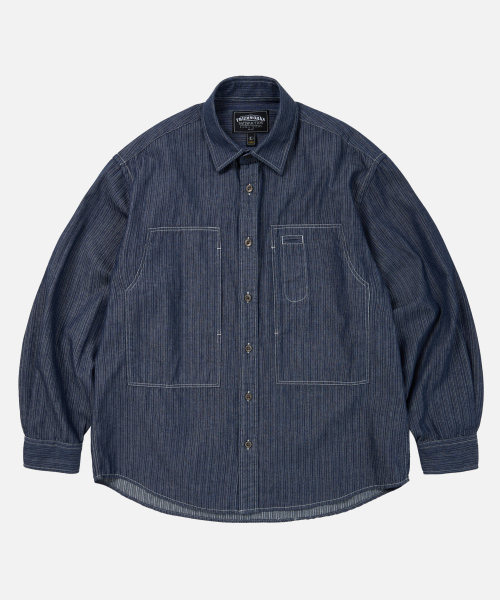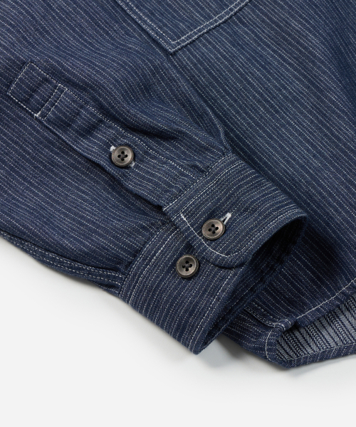 DENIM CARPENTER POCKET WORK SHIRT _ INDIGO STRIPE