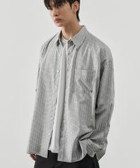 포인티드 실키 스트라이프 셔츠 [화이트]