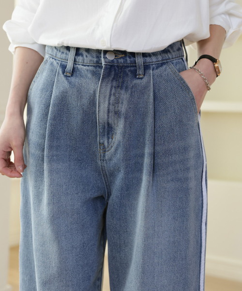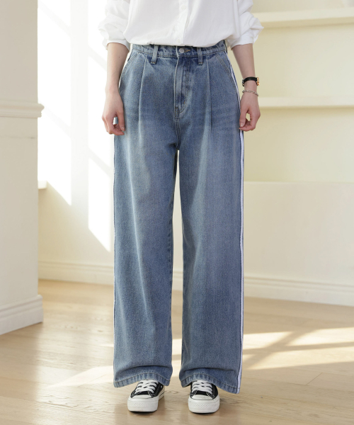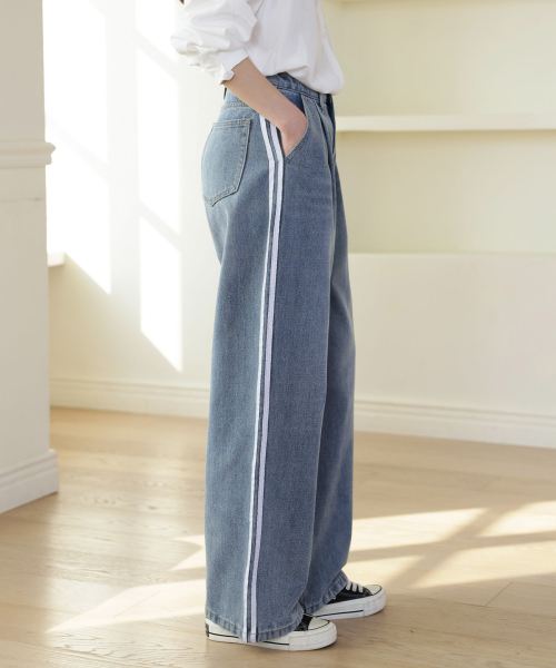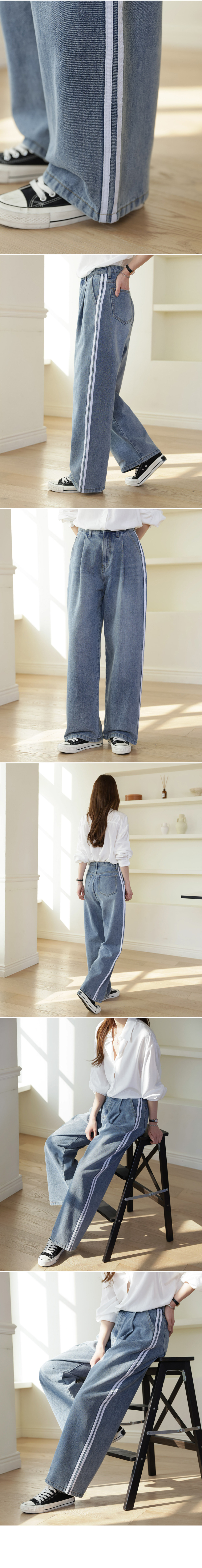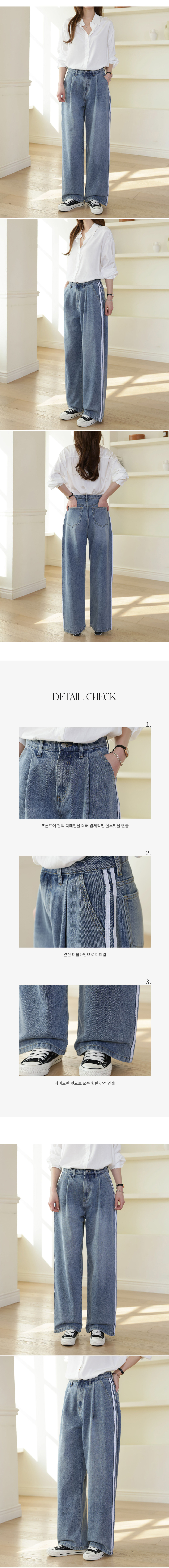 더블라인 핀턱 와이드 데님 팬츠