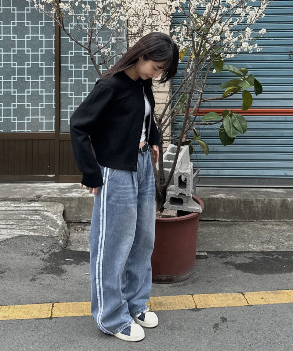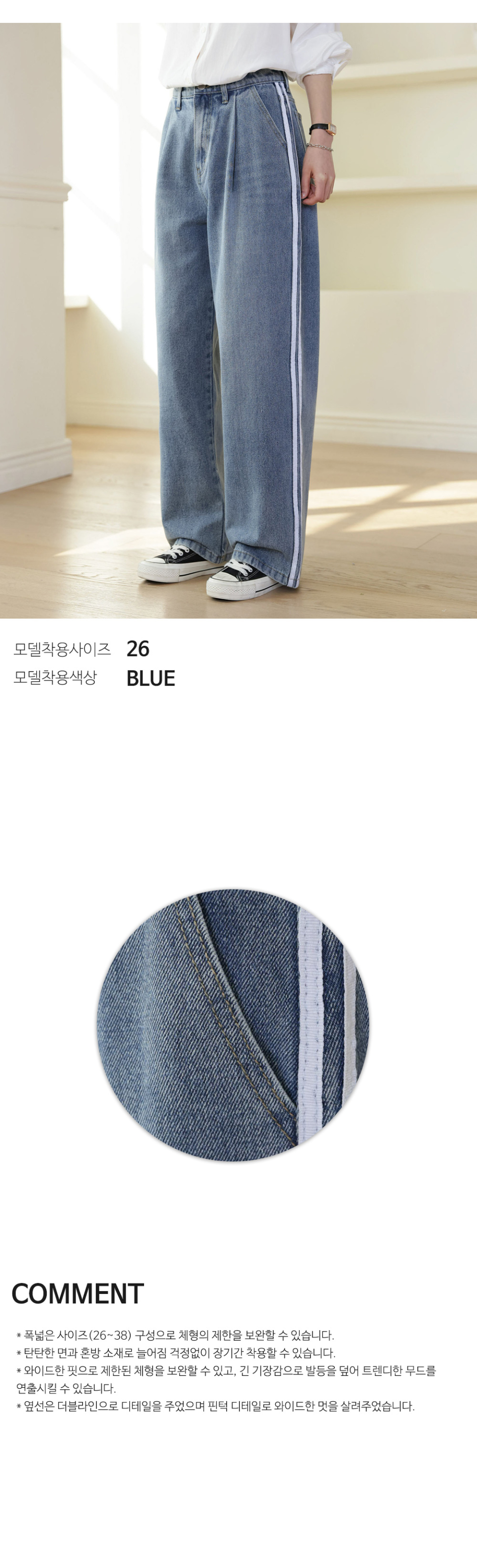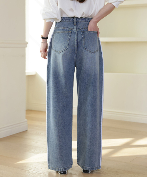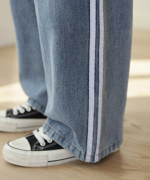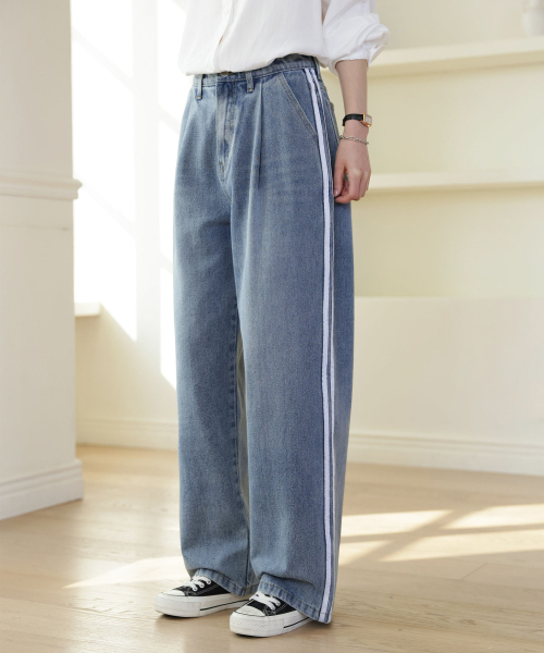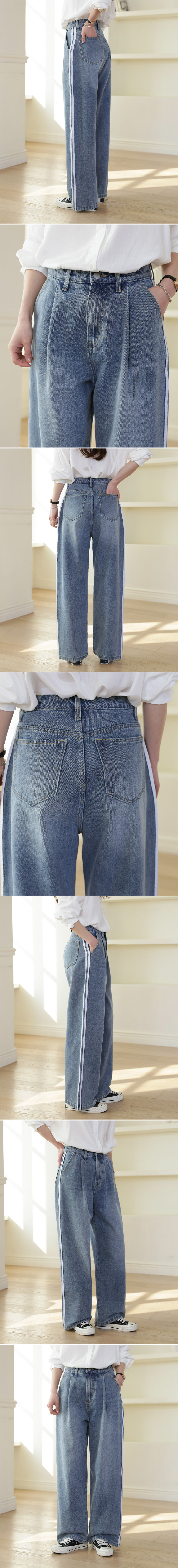 더블라인 핀턱 와이드 데님 팬츠