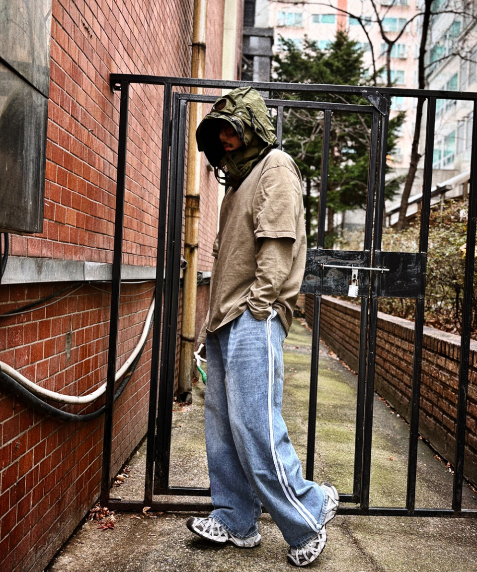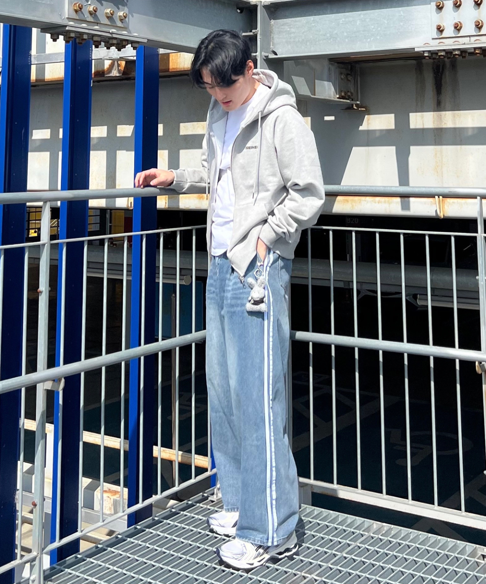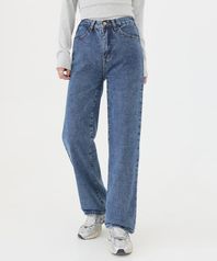 라이트워싱 컷팅 세미 와이드 청바지
