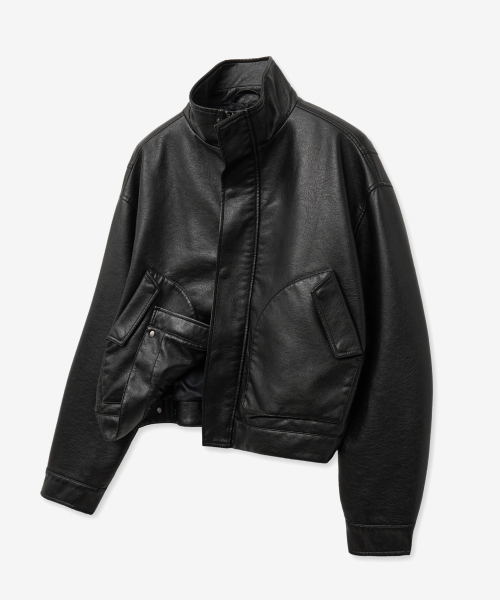 8248 워시드 레더 블루종 점퍼 (BLACK)
