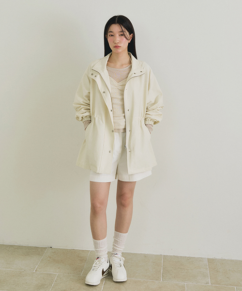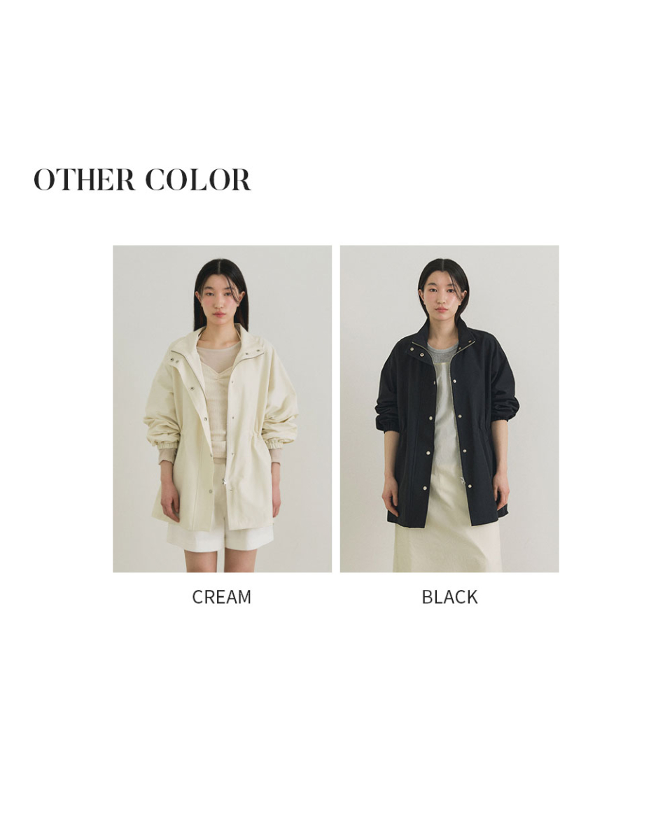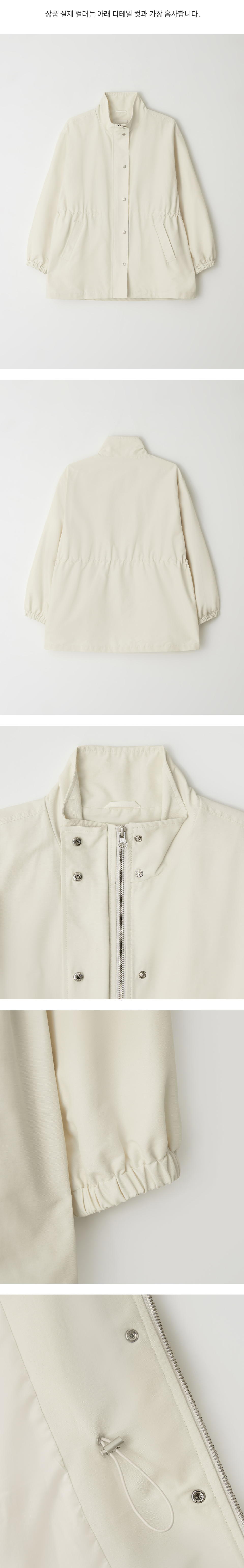 나일론과 코튼 혼방 소재로 제작된 이 아우터는 간절기에 활용도가 높은 데일리 아이템입니다. 안감이 있어 보온성을 제공하며, YKK 지퍼와 금속 스냅 디테일이 디자인 포인트를 더합니다. 허리 스트링과 스토퍼를 이용해 사이즈 조절이 가능하며, 소매 밴딩 처리로 편안한 착용감을 자랑합니다.