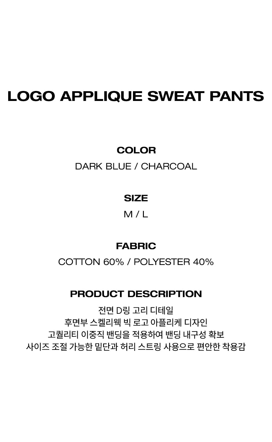 로고 아플리케 스웨트 팬츠[다크블루]