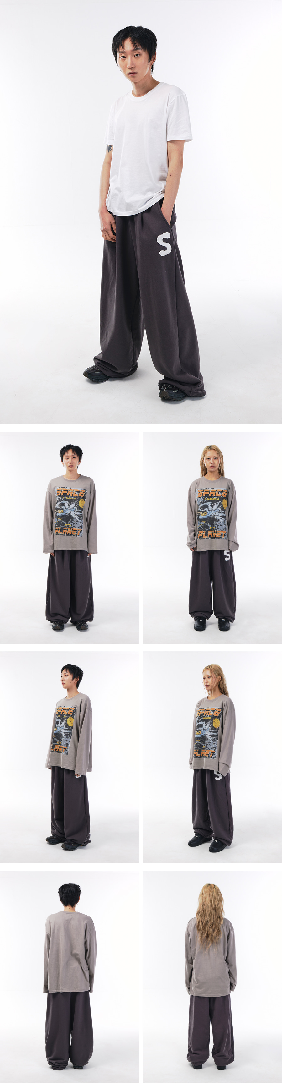 88 크로스 백 패치 스웨트 팬츠[그레이]